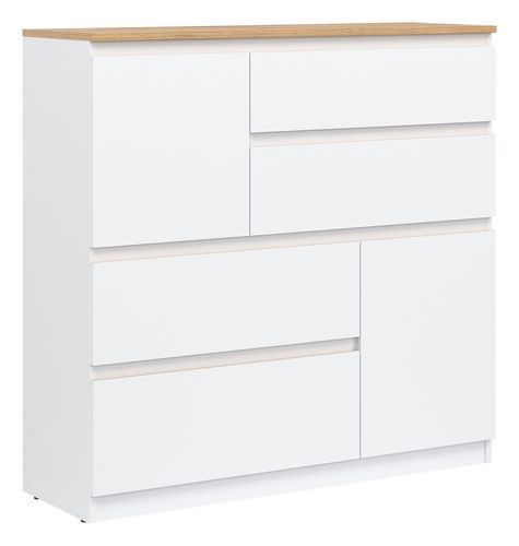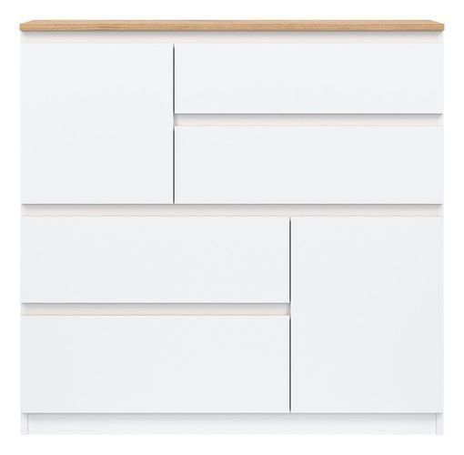 Kommode 75x105x35 cm REMI RM06 mit 2 Türen 4 Schubladen Weiß/ Evoke Eiche