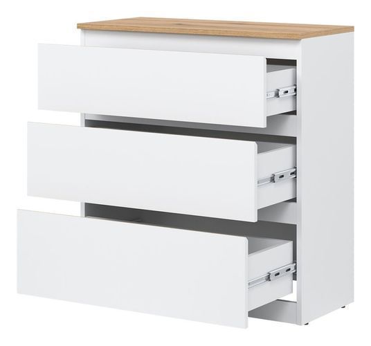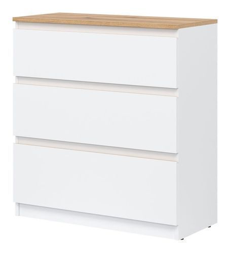 Kommode 78x84x35 cm REMI RM02 Schubladenkommode 3 Schubladen Weiß/ Evoke Eiche