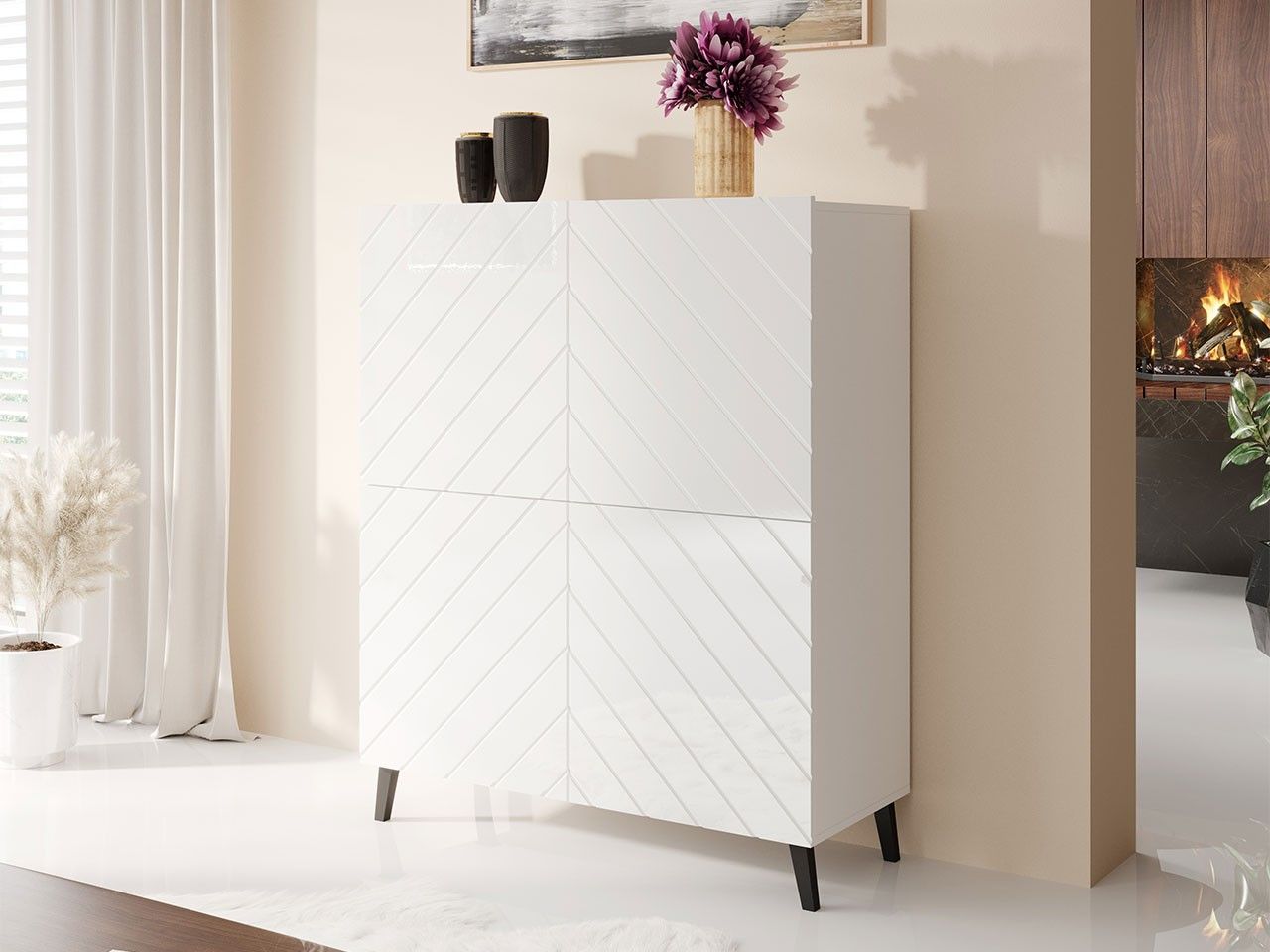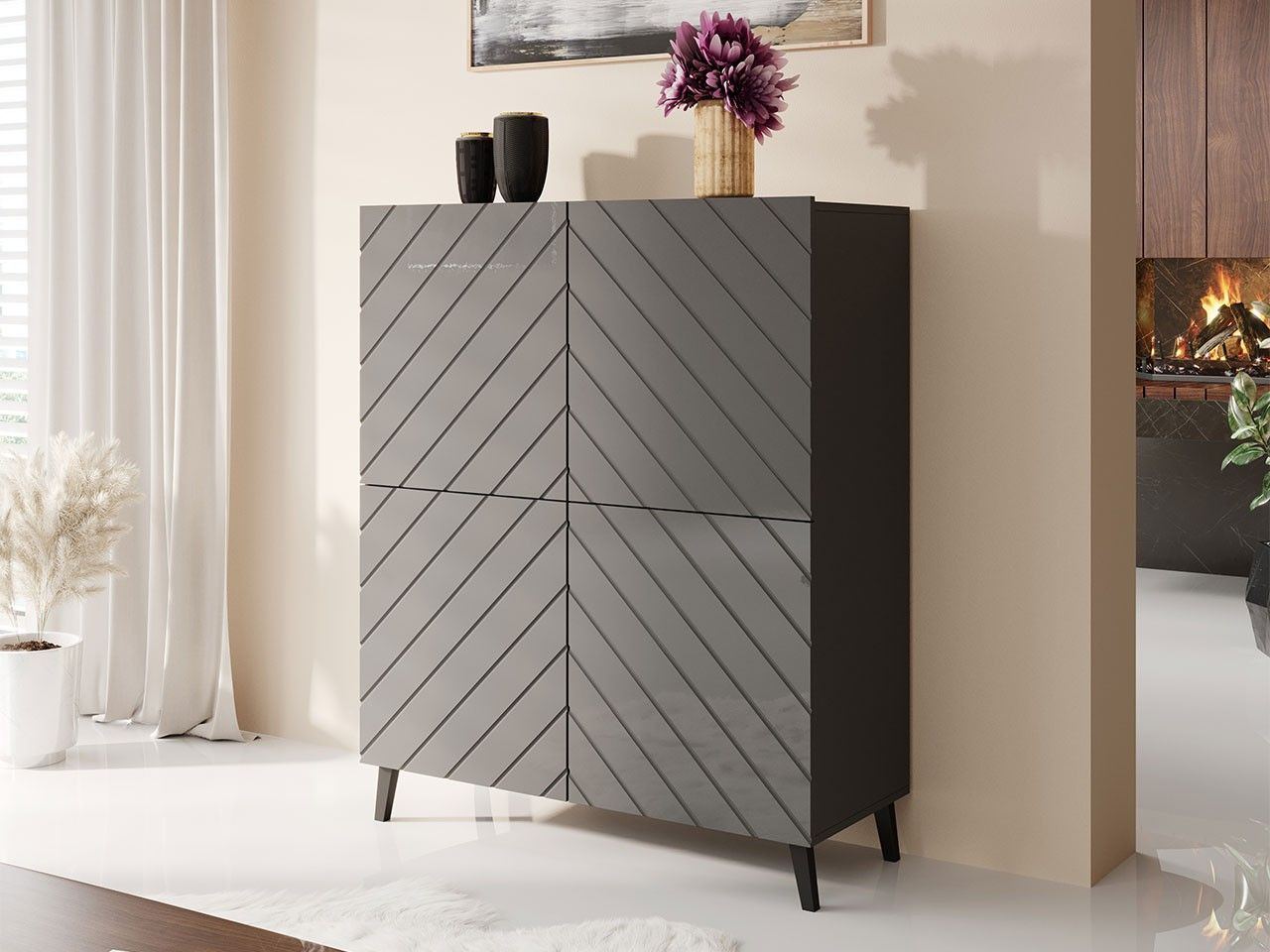 Kommode Abeto 100 Highboard mit 4 Türen Schrank Sideboard Modern Wohnzimmer