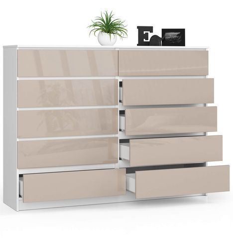 Kommode AKORD K160 Weiß 160 cm Front Cappuccino Hochglanz B160 x H121 x T40 cm