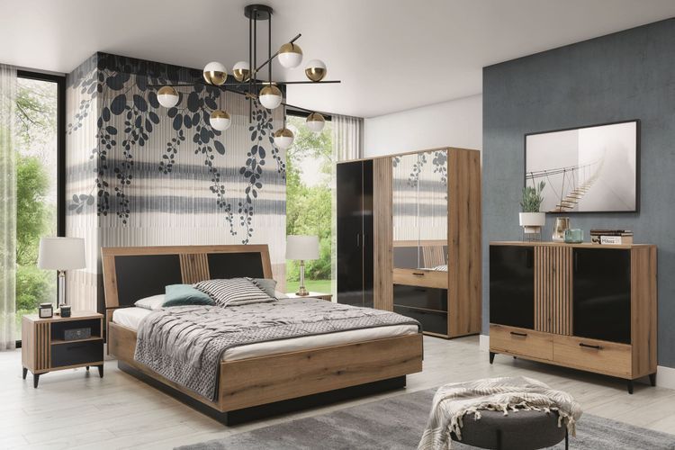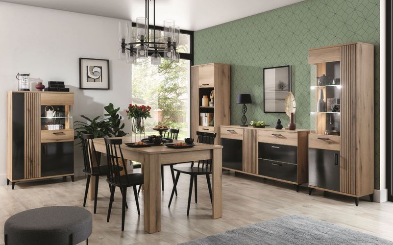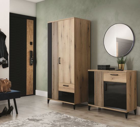 Kommode Aris AS2 Wohnzimmerschrank 2 Türen 1 Schublade Evoke Eiche / Schwarz Glanz