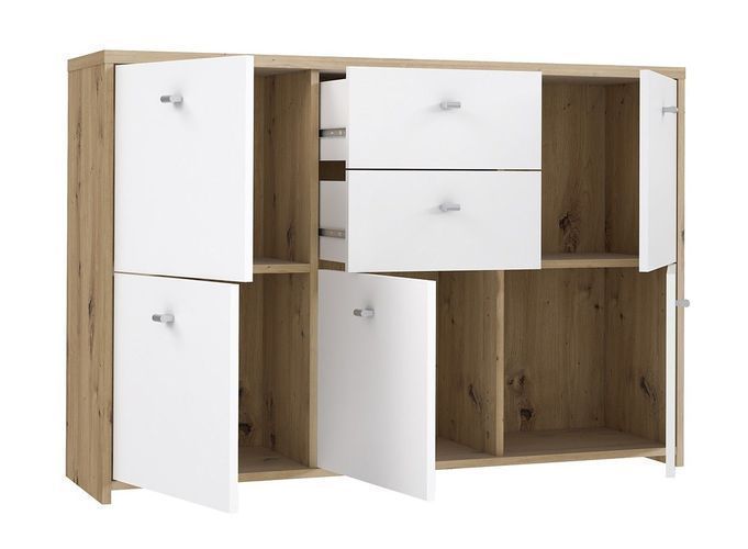 Kommode Best Chest SQNK233 Sideboatd 5 Türen 2 Schubladen Artisan Eiche Weiß