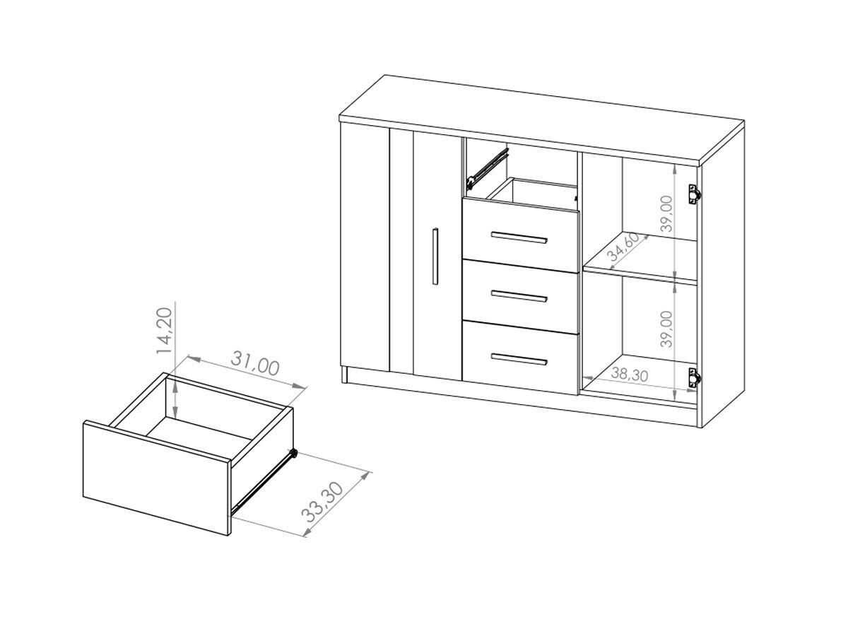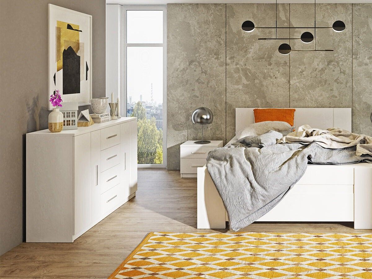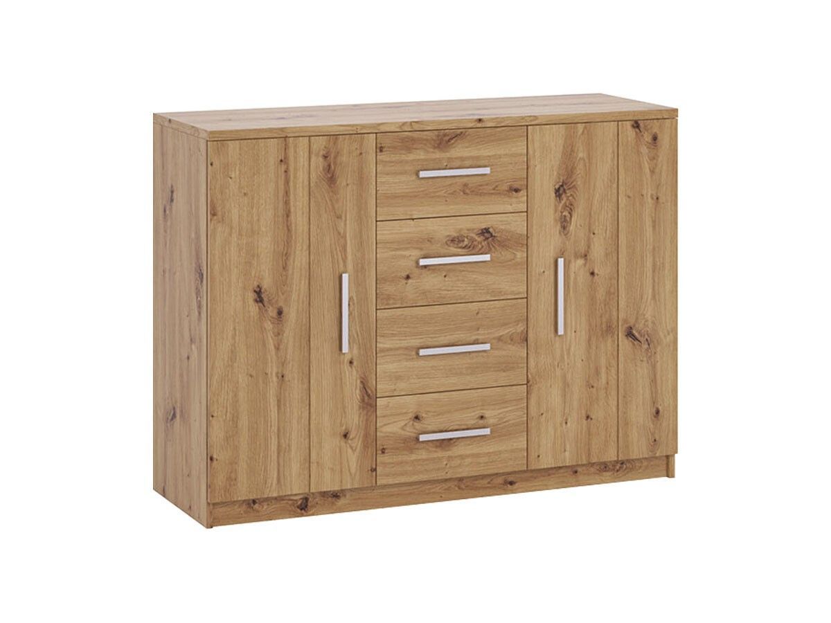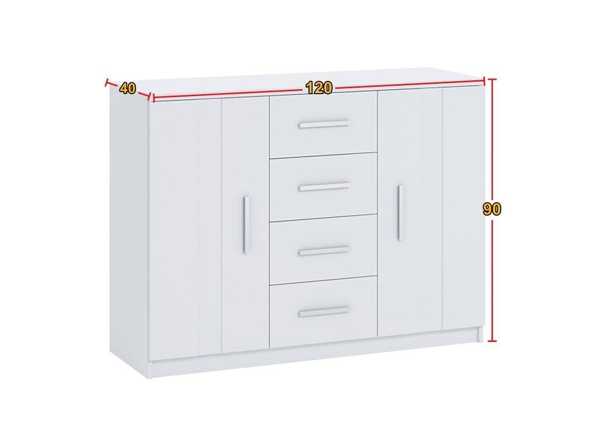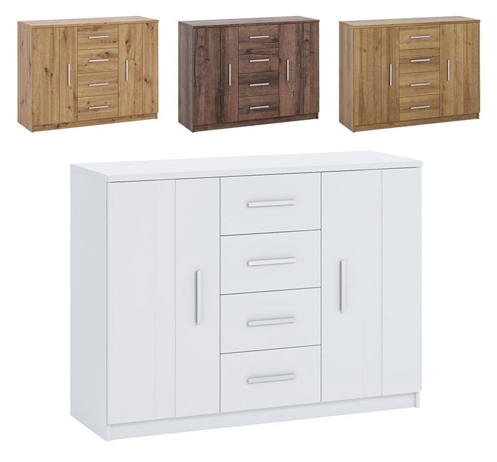 Kommode BONO BO-01 mit 4 Schubladen 2 Schränke 120 cm Sideboard Weiß Artisan