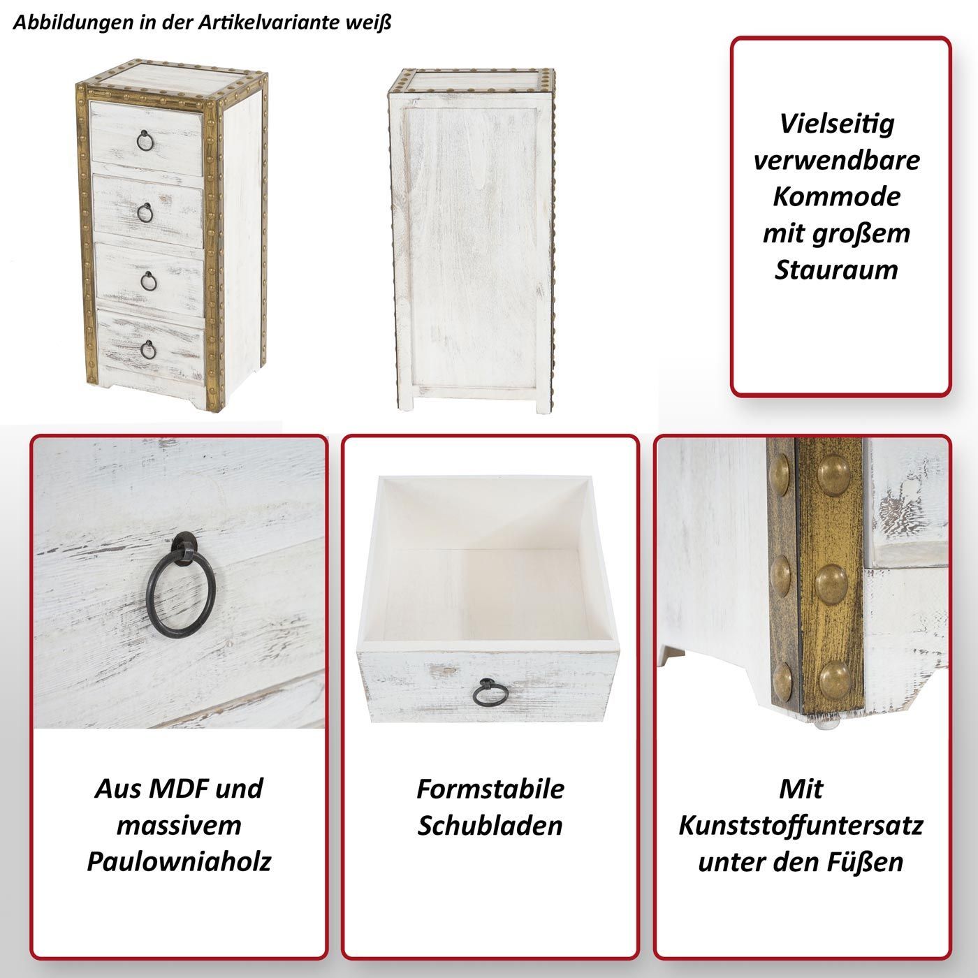 Mendler Kommode Duran, Schubladenkommode Schrank, 4 Schubladen 70x33x26cm Shabby-Look Vintage