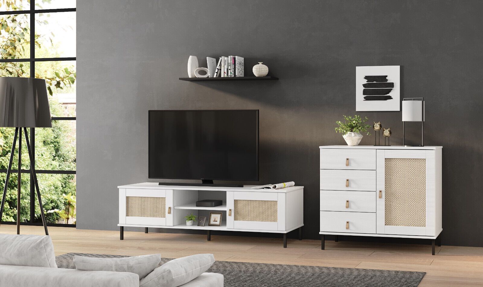 Kommode Highboard Kiefer massiv lackiert 100x136x40 cm Valencia