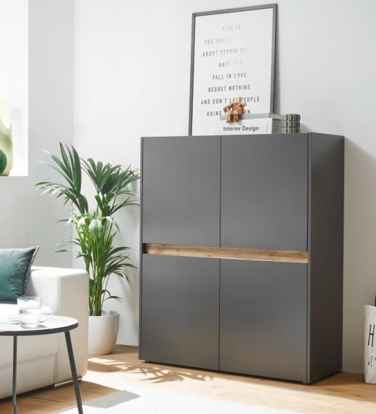 Kommode Highboard Schrank grau und Eiche Wotan Wohnzimmer Esszimmer Möbel Center