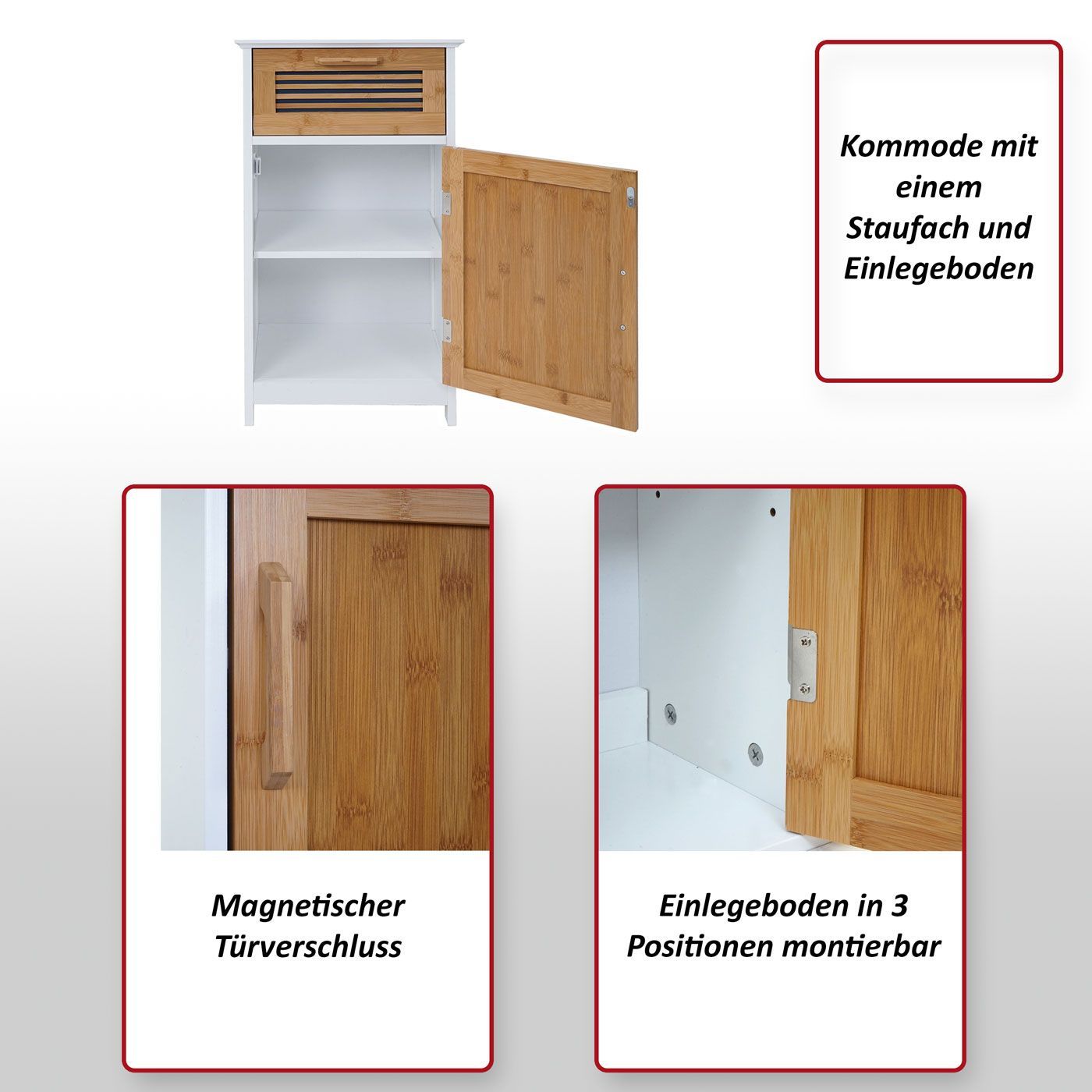 Mendler Kommode HWC-A85, Badezimmerkommode Badschrank Bambus, MVG 71x40x31cm weiß