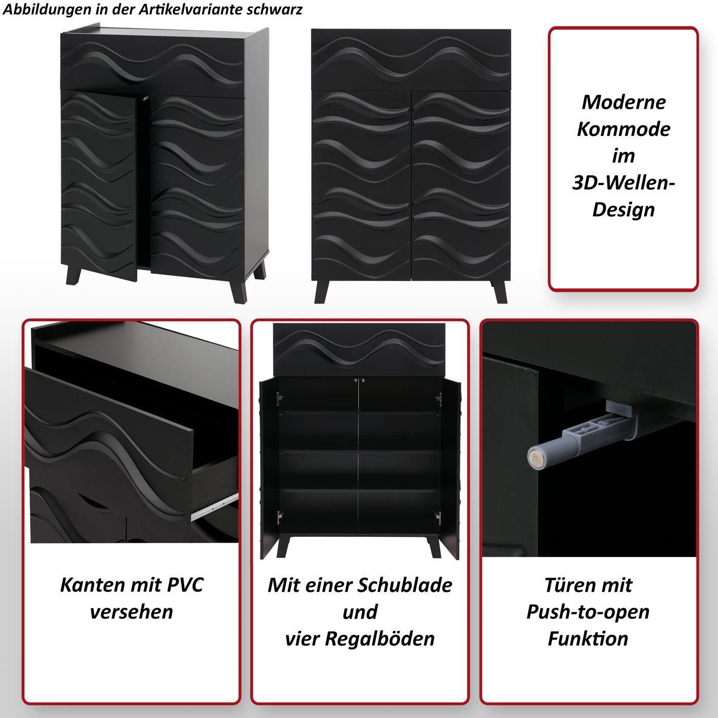 Mendler Kommode HWC-N86, Schrank Sideboard Anrichte, 3D-Wellen-Design Push-to-open Türen