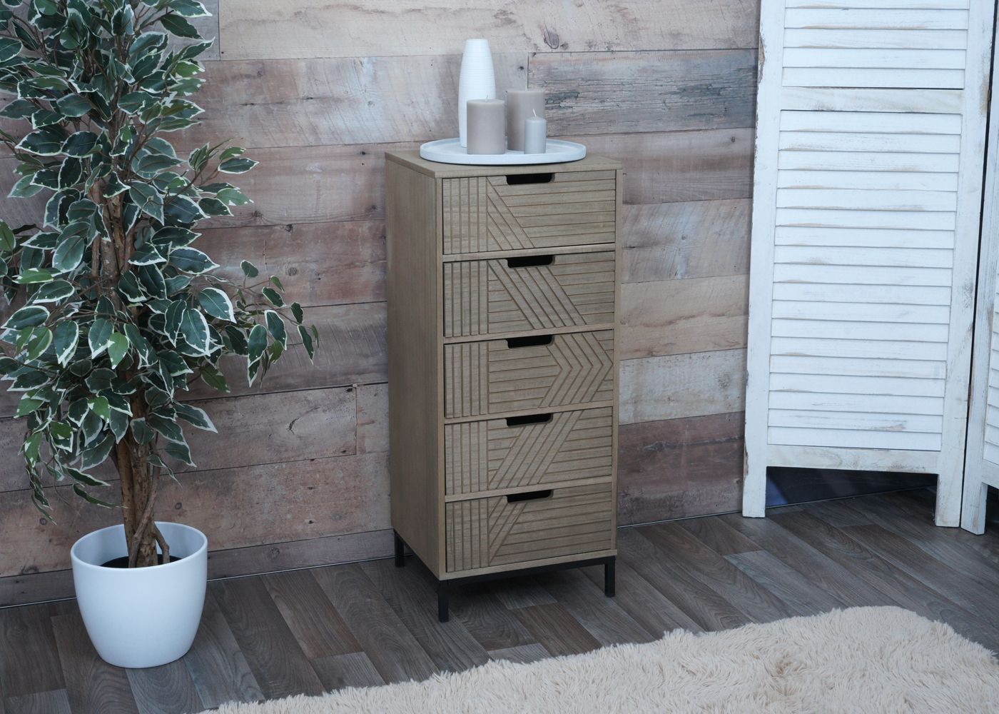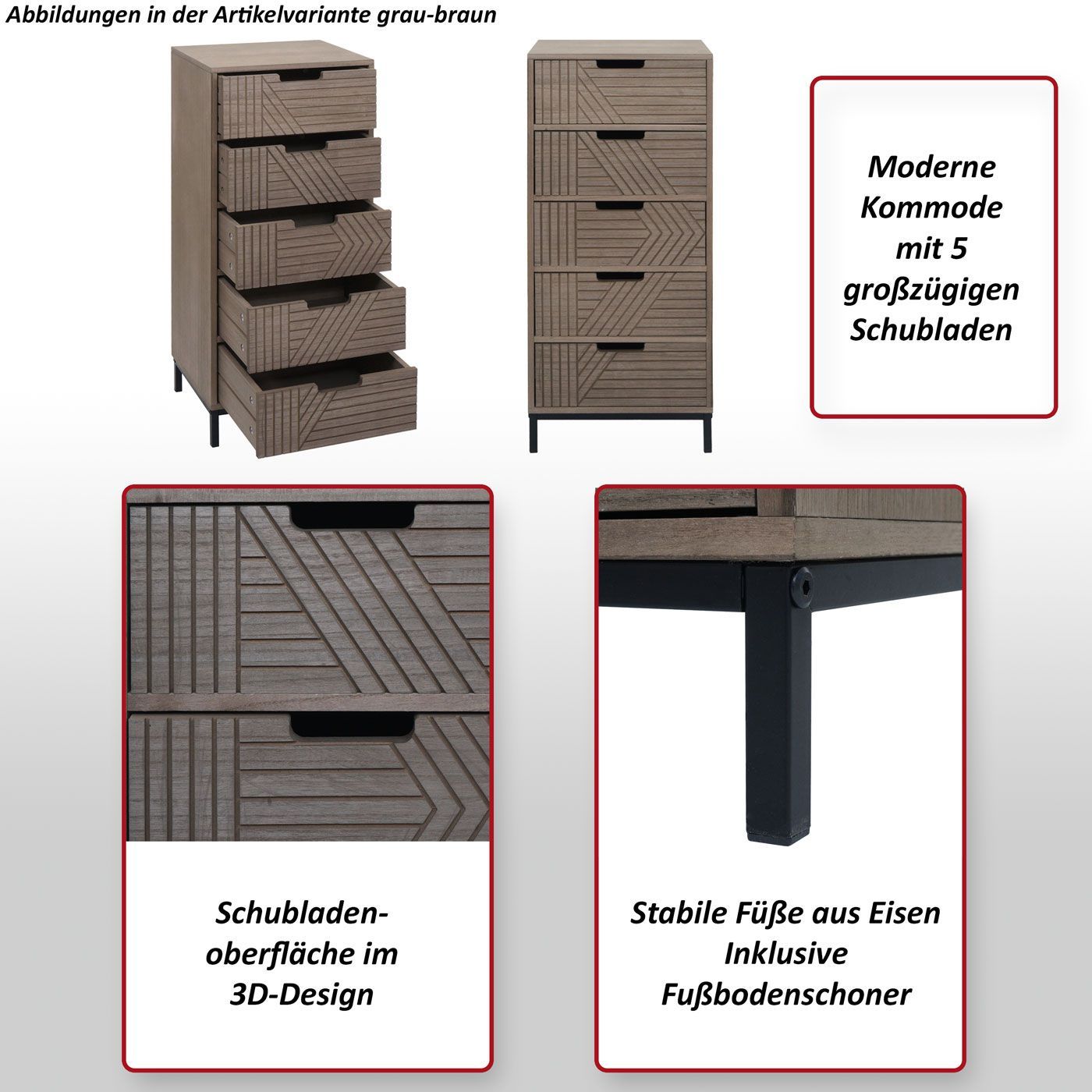 Mendler Kommode HWC-N90, Schrank Highboard , 3D-Design 5 Schubladen Holz Metall