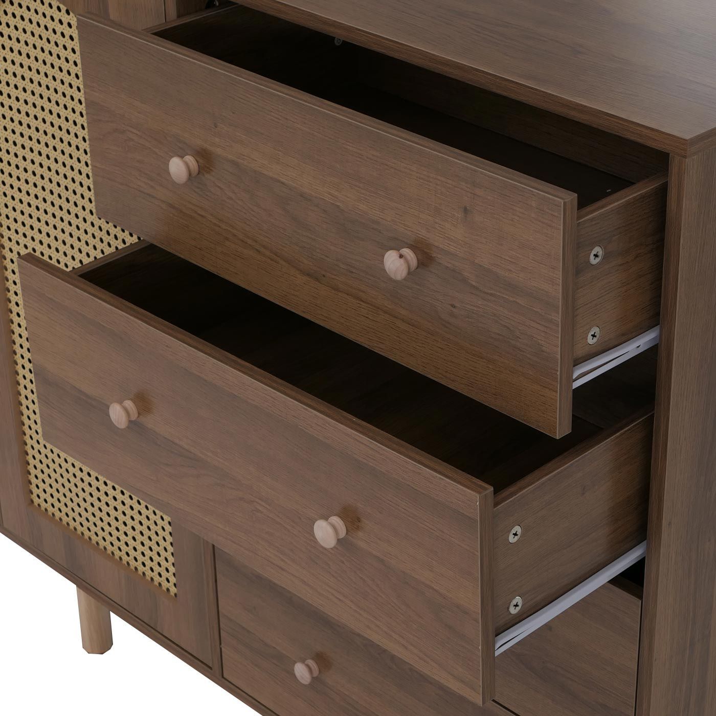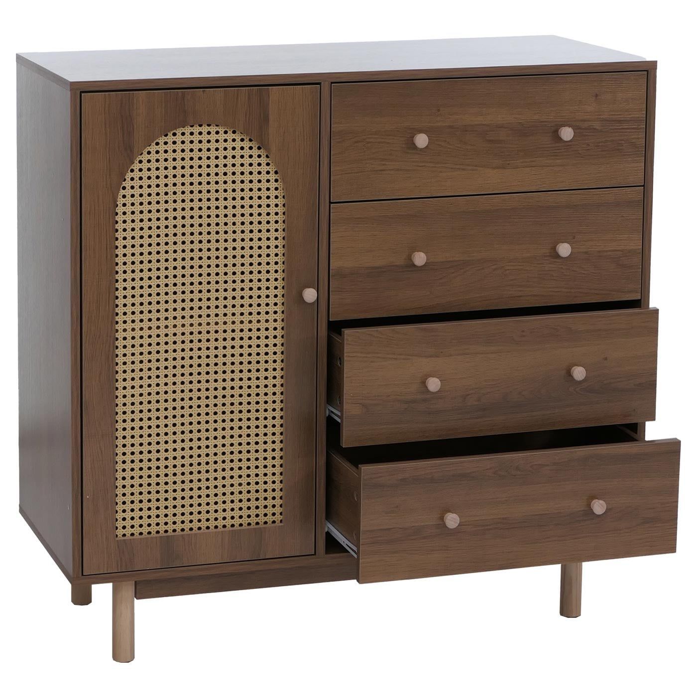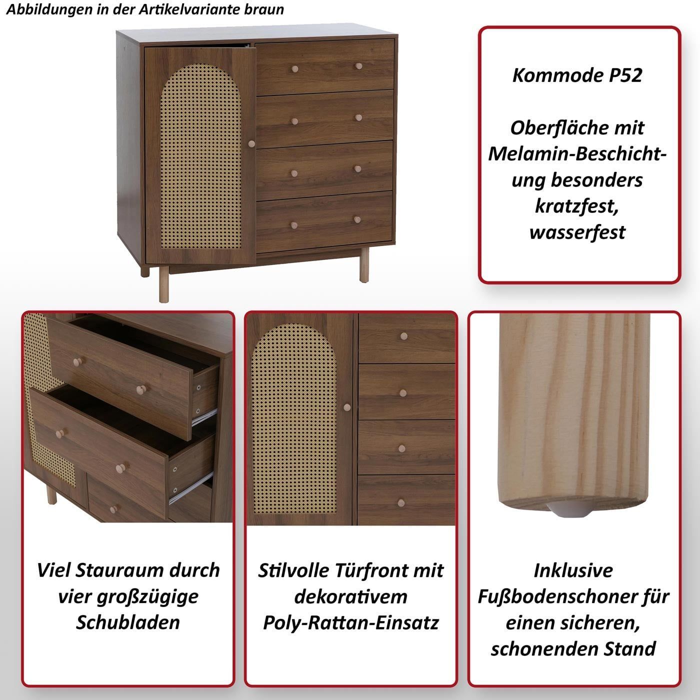 Mendler Kommode HWC-P52, Highboard, Schubladen Staufächer, Poly-Rattan MDF 95x100x40cm