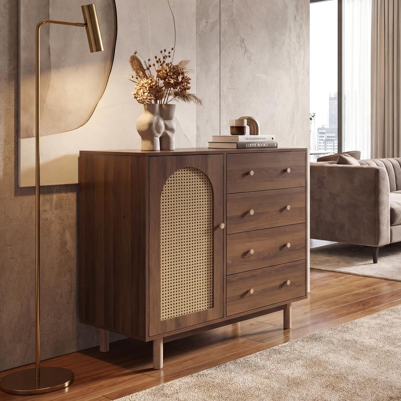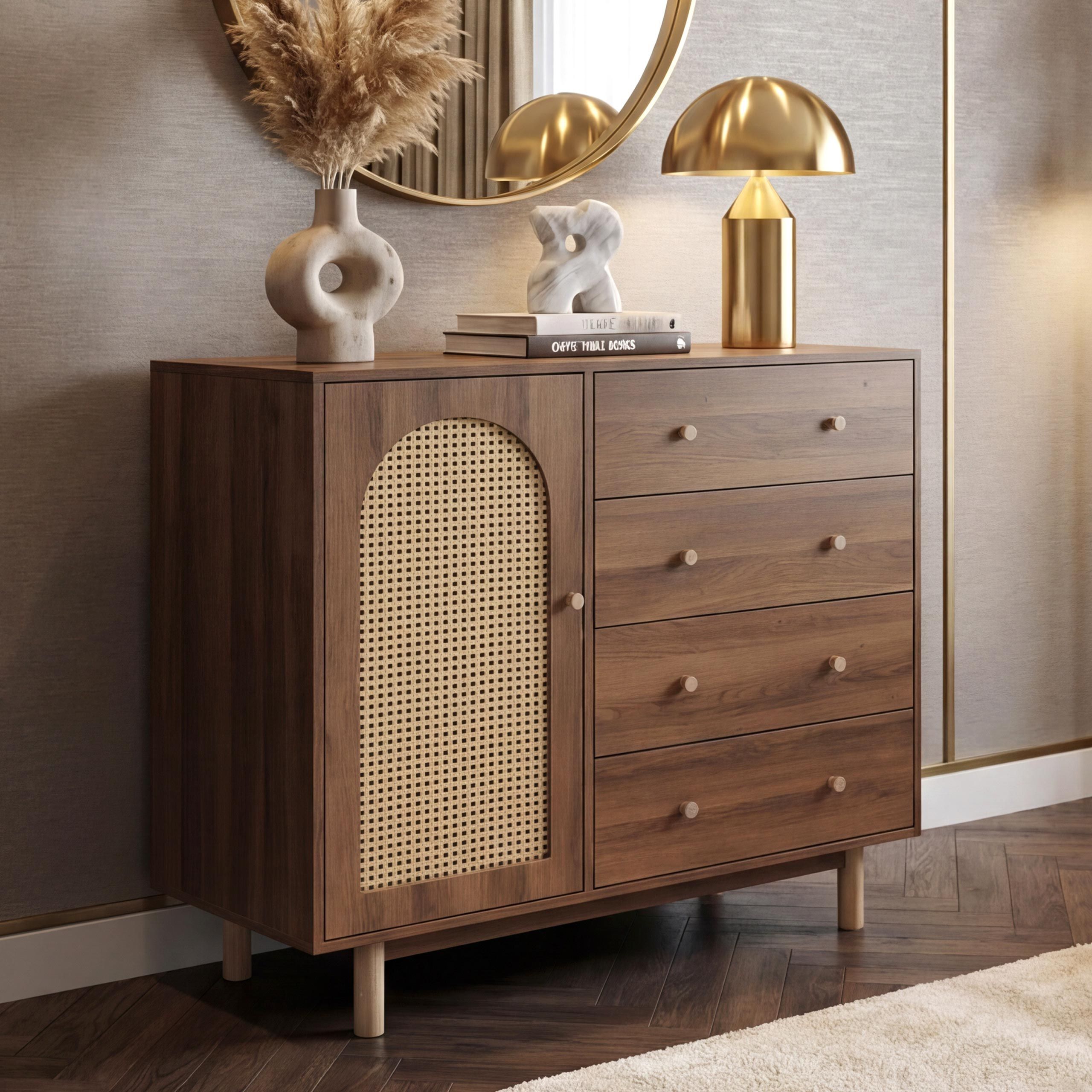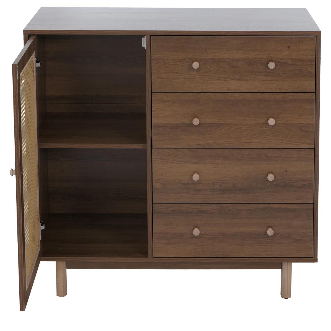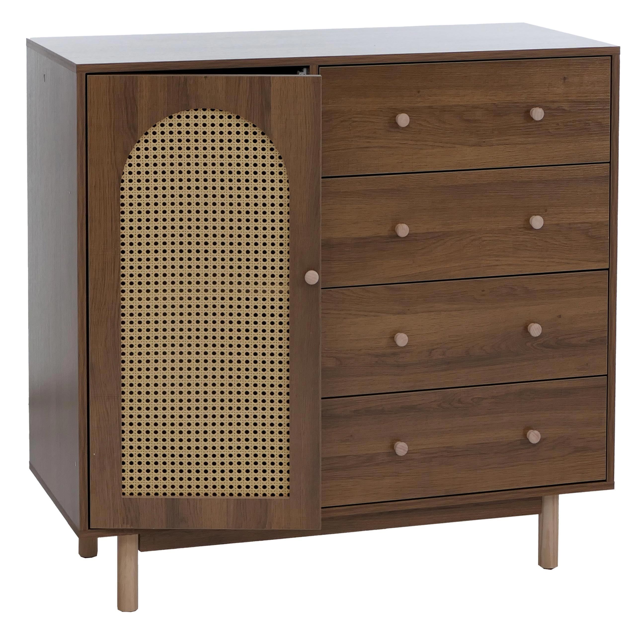Mendler Kommode HWC-P52, Highboard, Schubladen Staufächer, Poly-Rattan MDF 95x100x40cm