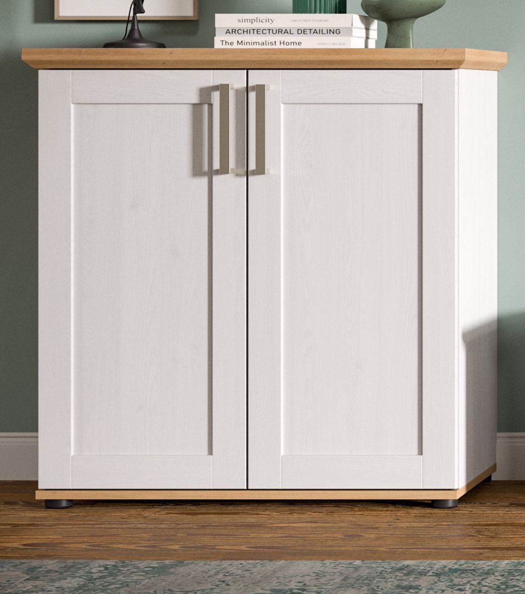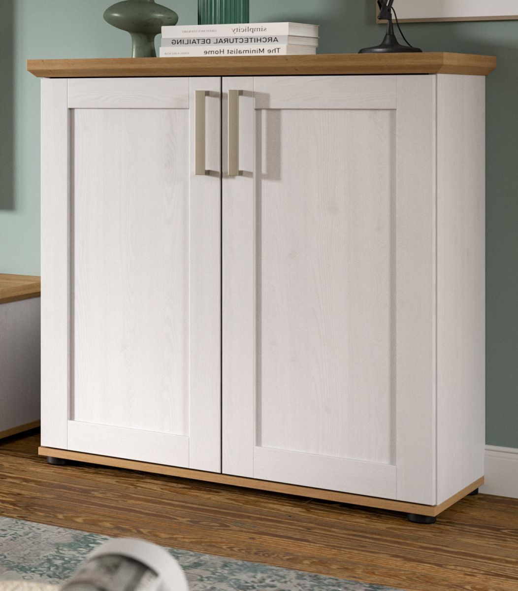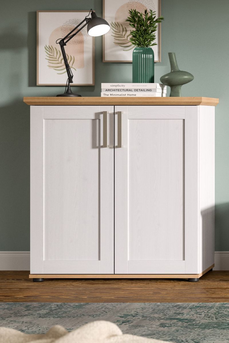 Kommode Lärche weiß Landhaus und Eiche Artisan Sideboard 2-trg. 84 x 88 cm Mirano
