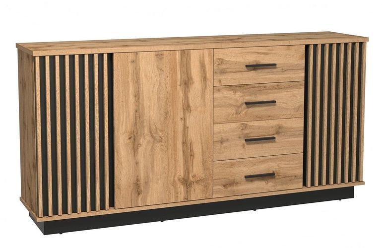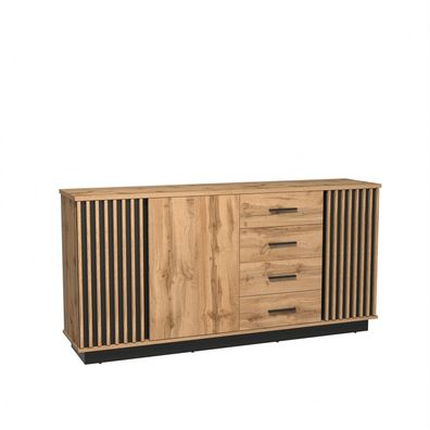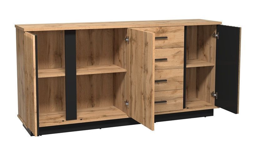 Kommode LAMELO LA21 Sideboard 3 Türen 4 Schubladen Wotan Eiche/ Schwarz