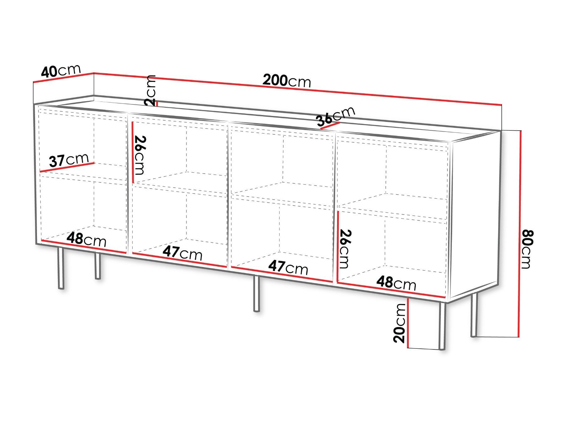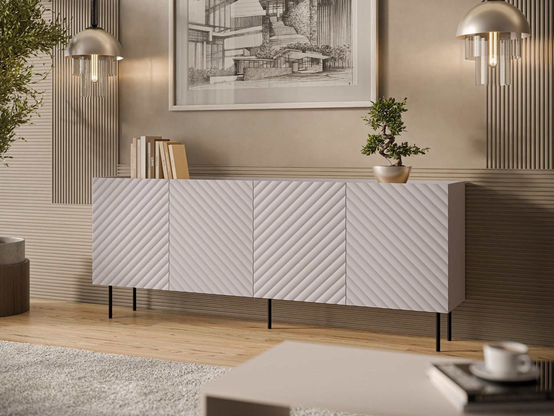 Kommode Lucca 200 4D Schrank Modern Design Füße aus Stahl Wohnzimmer Kollektion M24