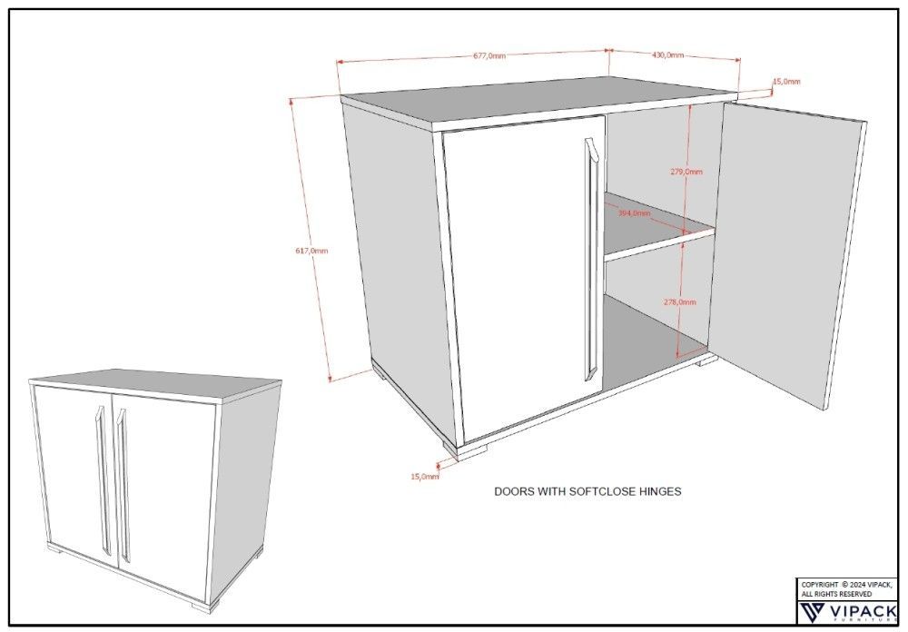 VIPACK Kommode mit 2 Türen Aufbewahrungsschrank Sideboard Schrank Weiß
