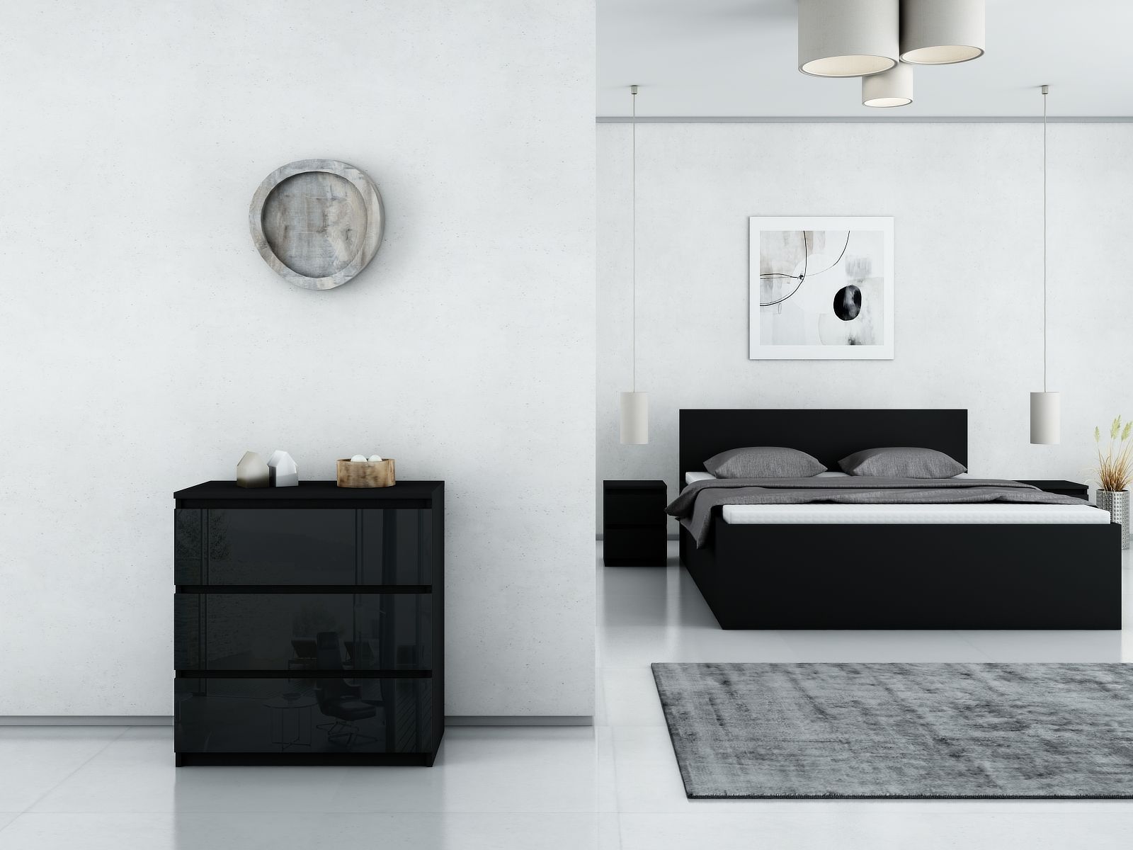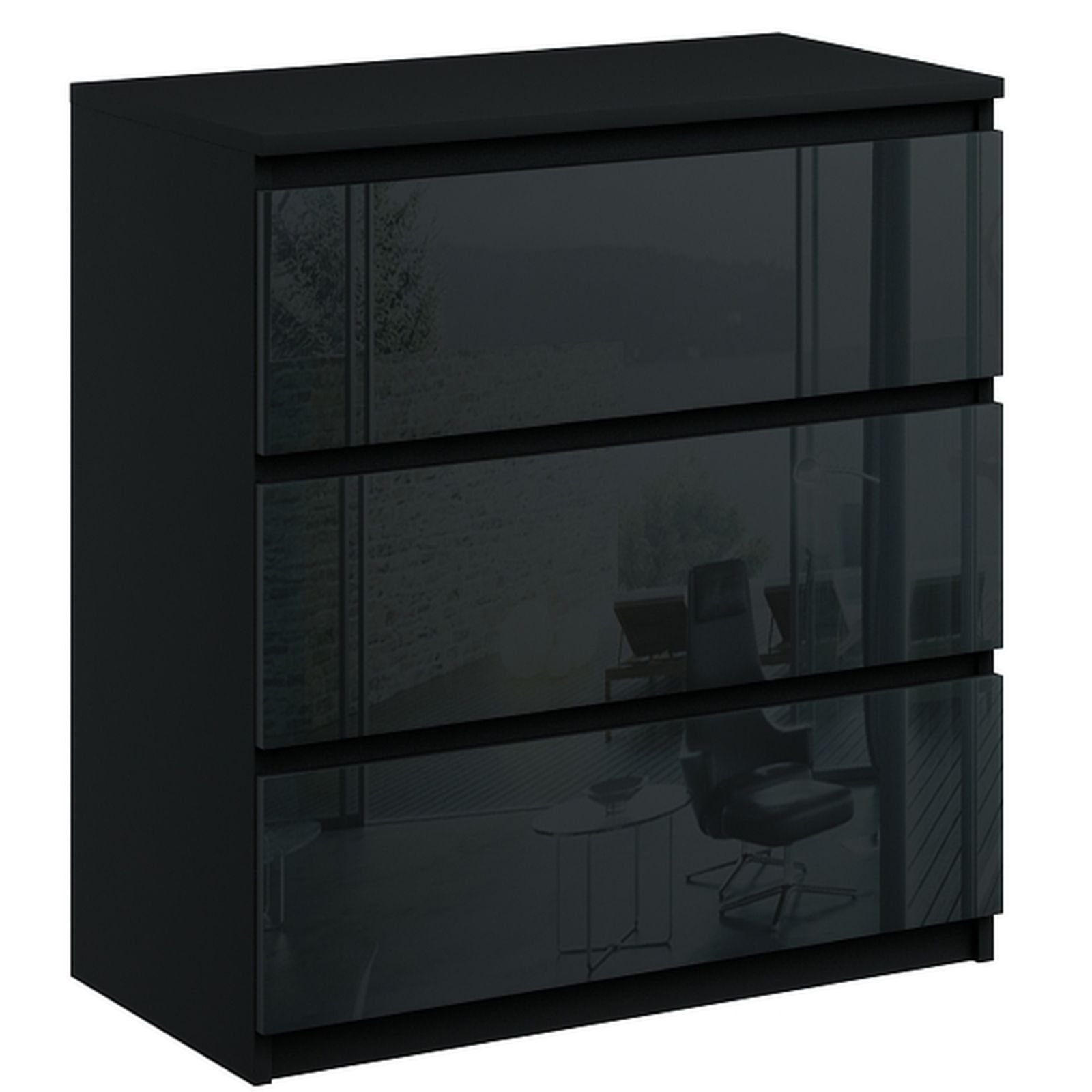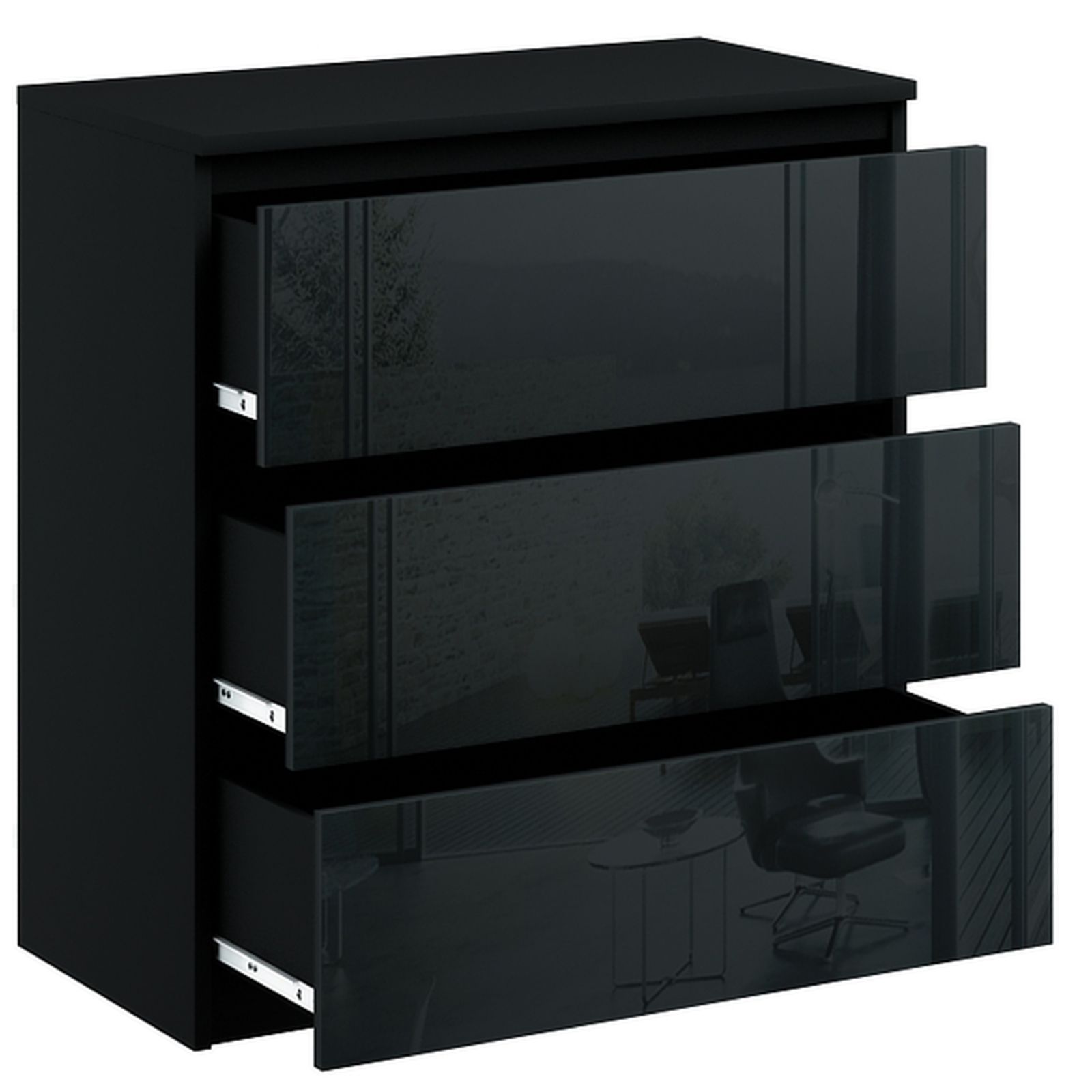 Kommode mit 3 Schubladen Sideboard Schwarz Hochglanz Anrichte holz 70 cm