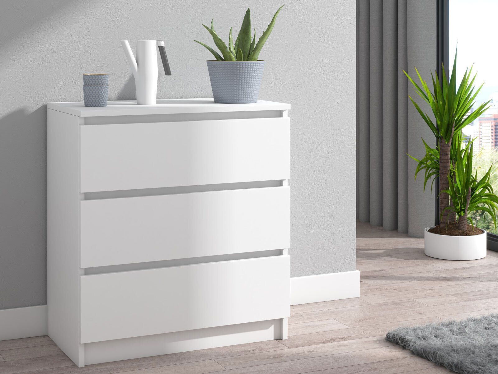 Kommode mit 3 Schubladen Sideboard weiß Anrichte modern glatt