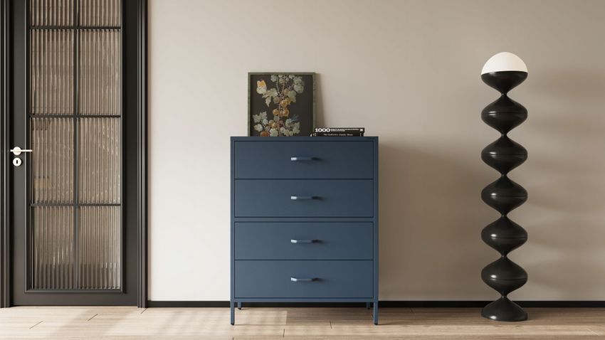 Kommode mit 4 Schubladen Carla Kommodenschrank Metall, 80 x 101,5 x 40 cm, Dunkelblau