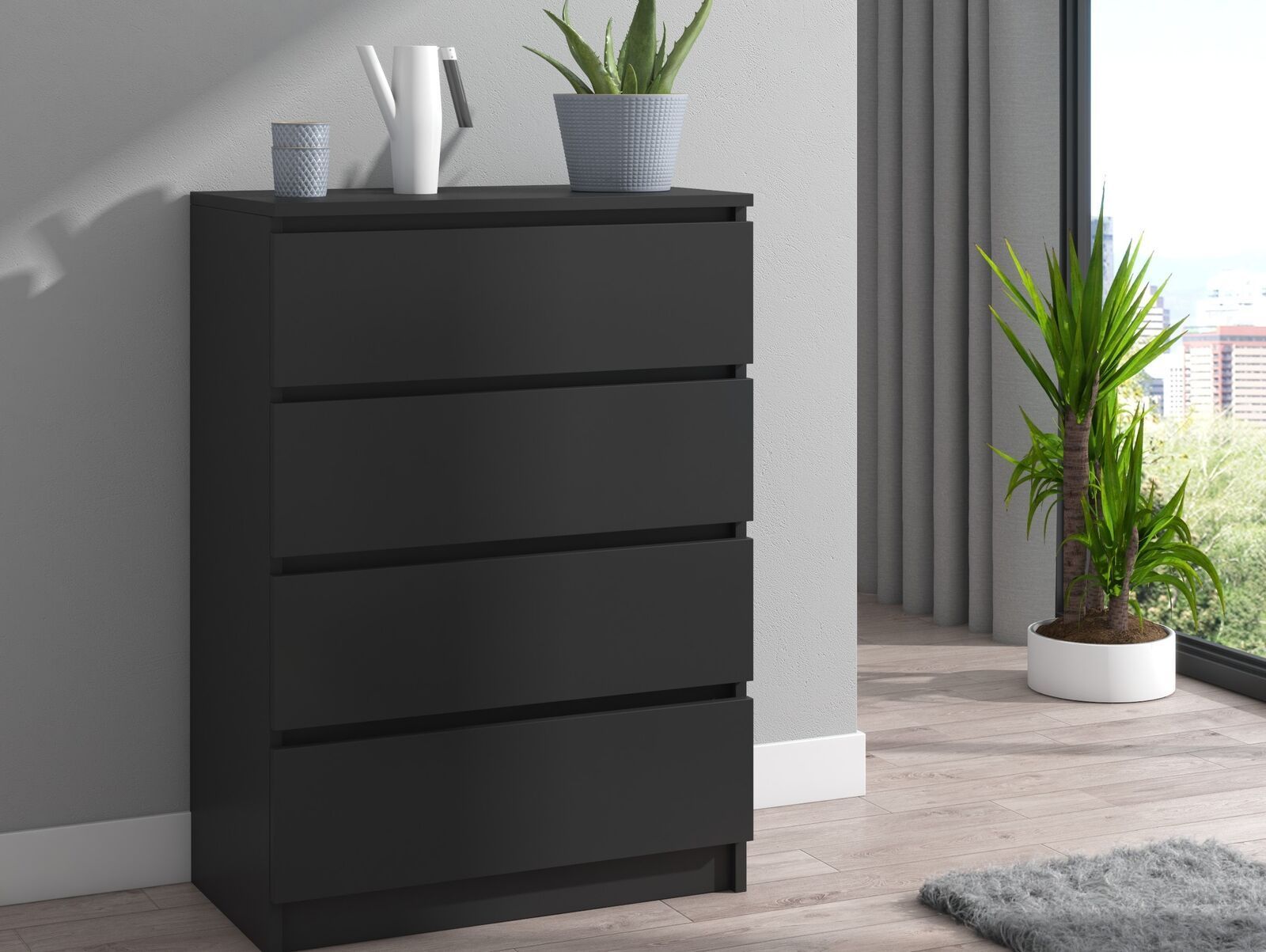 Kommode mit 4 Schubladen Sideboard schwarz Anrichte holz