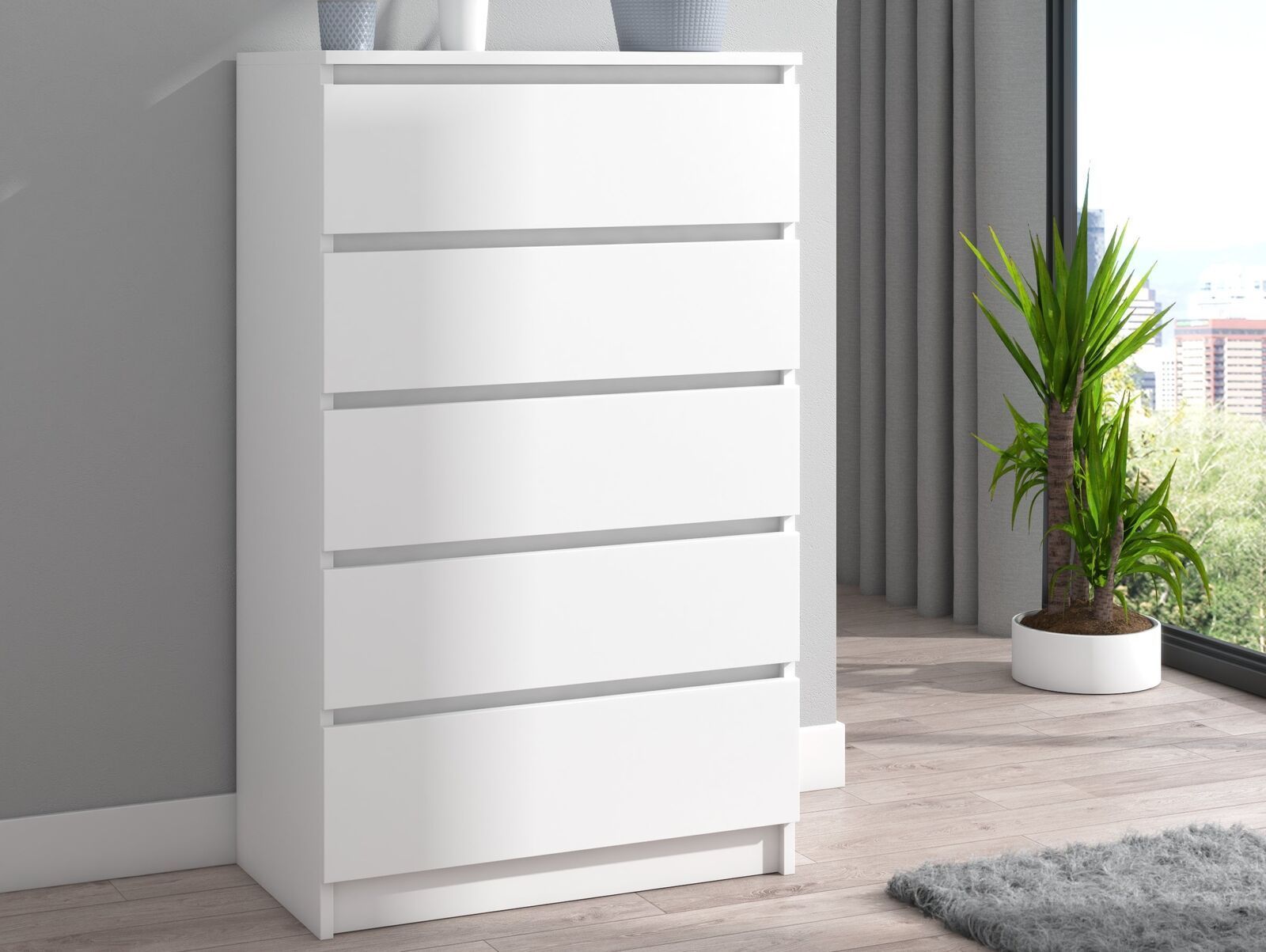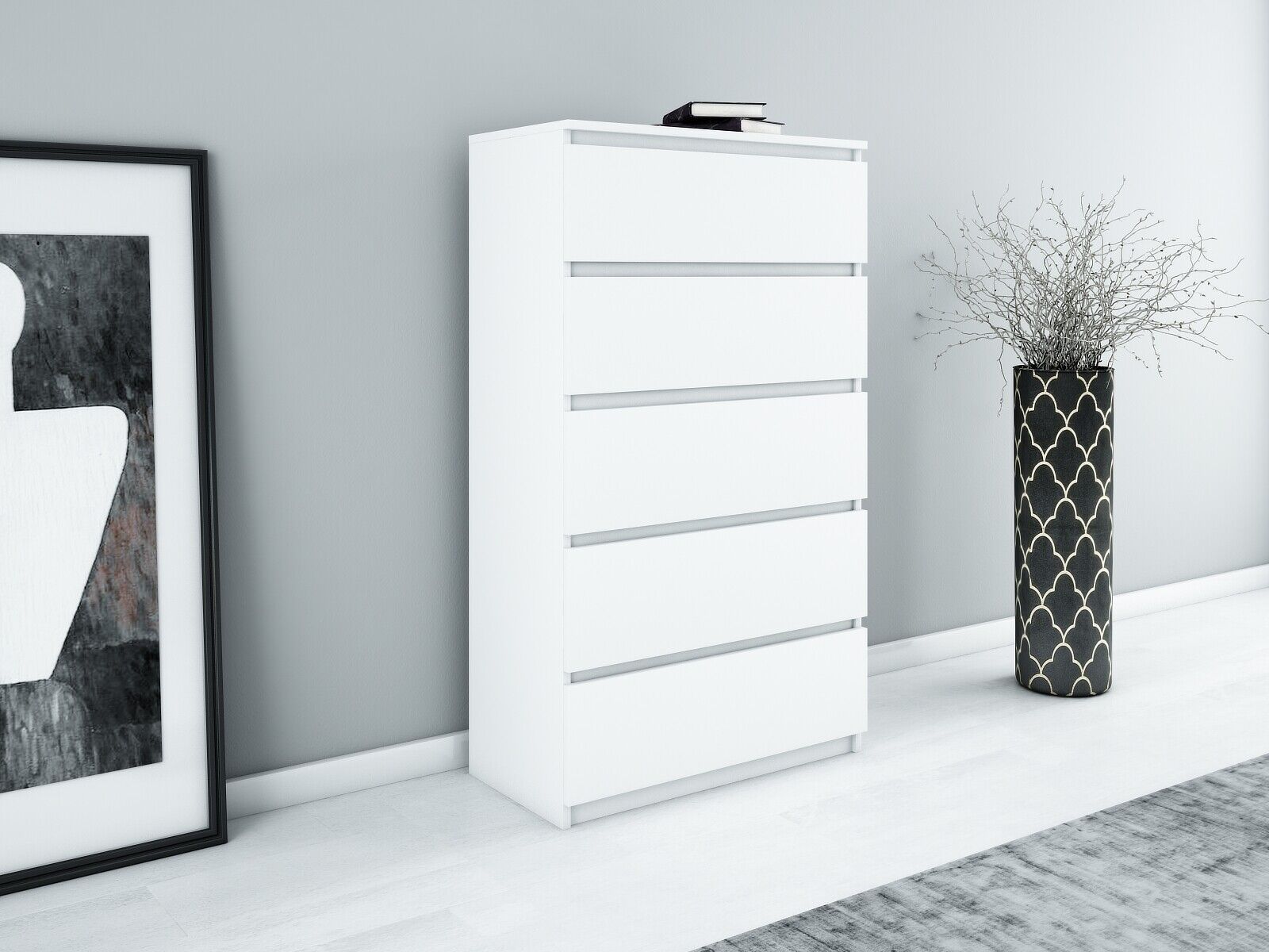 Kommode mit 5 Schubladen Sideboard weiß Anrichte holz Möbel Schubladenschrank