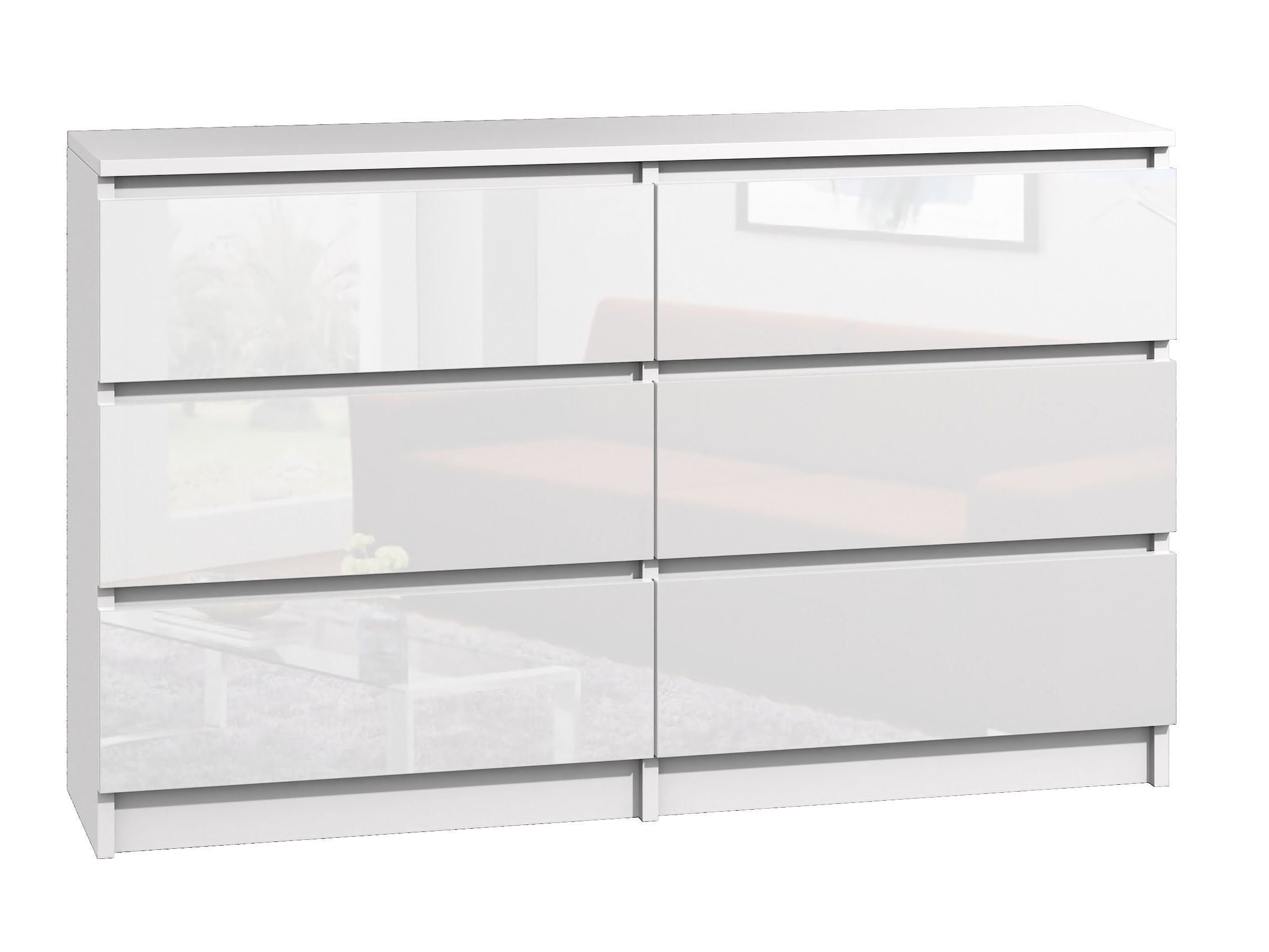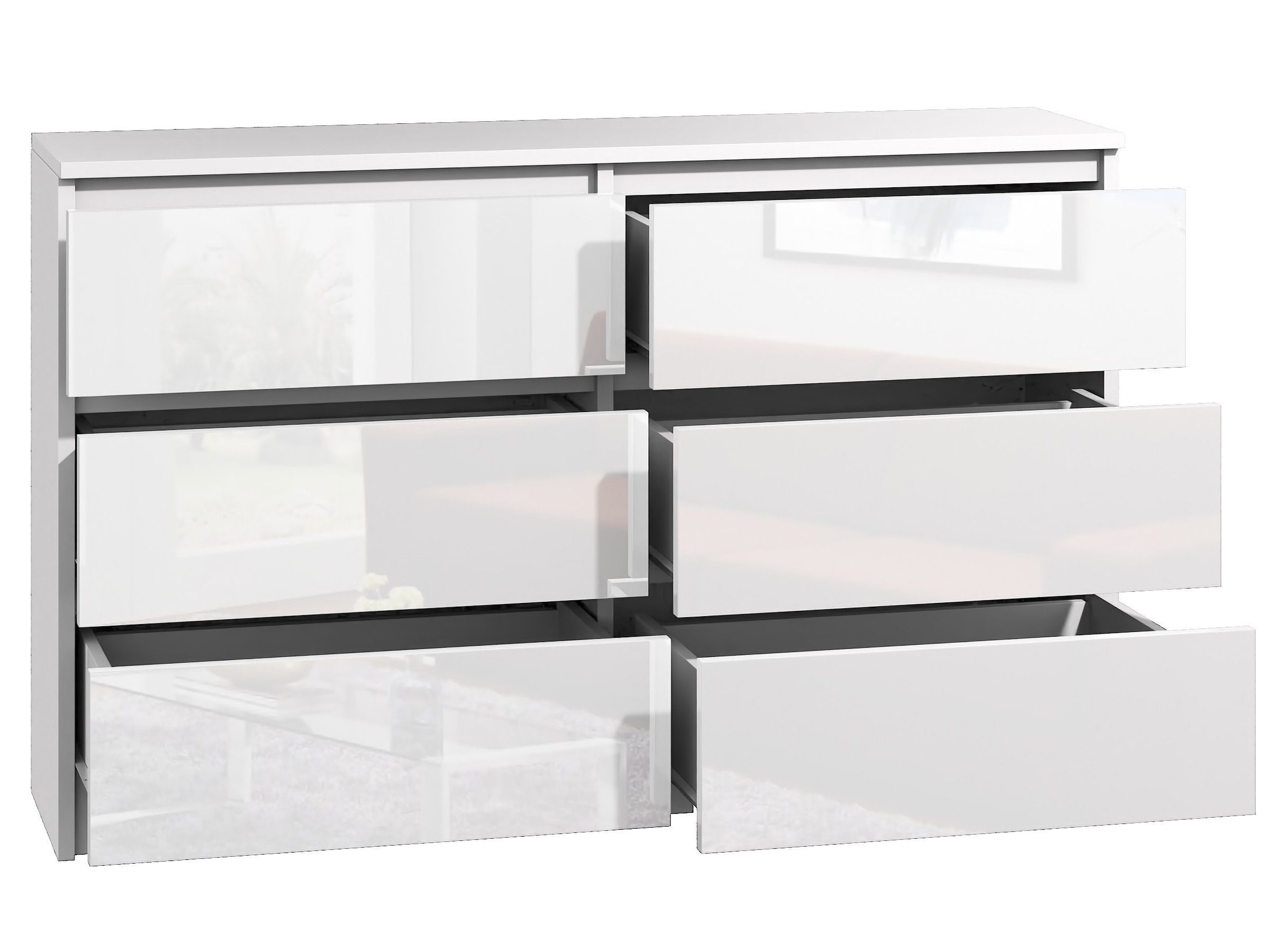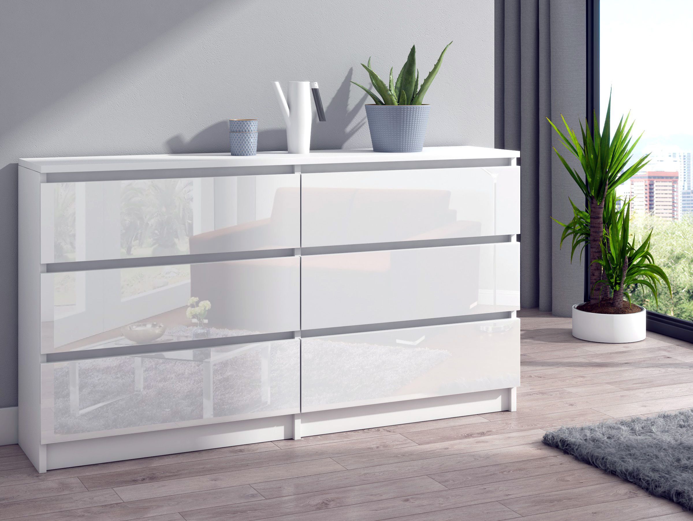Kommode mit 6 Schubladen 140cm Sideboard Anrichte holz weiss hochglanz Modern