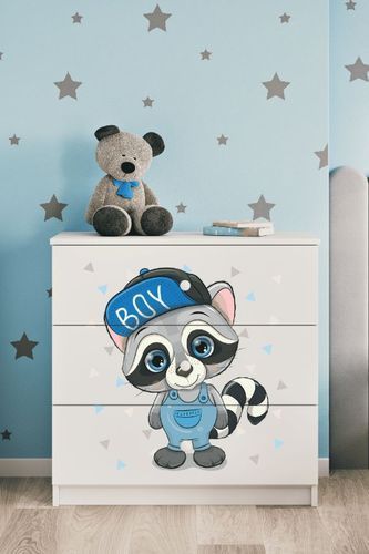 Kommode mit Schubladen Waschbär in der Farbe Weiß Babydreams