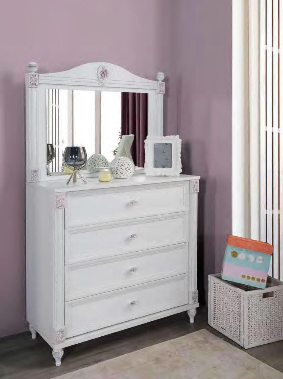 Kommode mit Spiegel Kinderzimmer Kinderschrank Mädchen Jugendzimmer Weiß Möbel