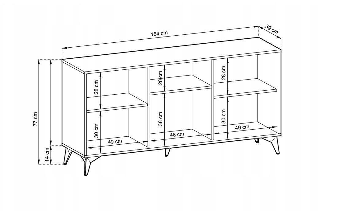 Kommode mit zwei Türen Diamond 104cm Eiche Evoke/Schwarz
