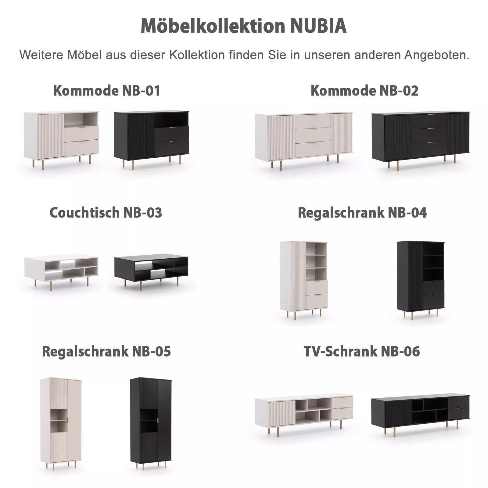 Kommode NUBIA NB-01. Die NUBIA-Möbelkollektion vereint zwei völlig unterschiedliche Stile und Charaktere und schafft so einen einzigartigen Raum voller Kontraste und Ausdruck. Einerseits haben wir die würdevolle, markante Schwärze, die dem Raum Eleganz, Geheimnis und Stärke verleiht. Andererseits sorgt das sanfte, beruhigende Kaschmir für Zartheit, Ruhe und Gemütlichkeit im Inneren.