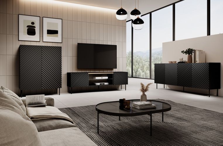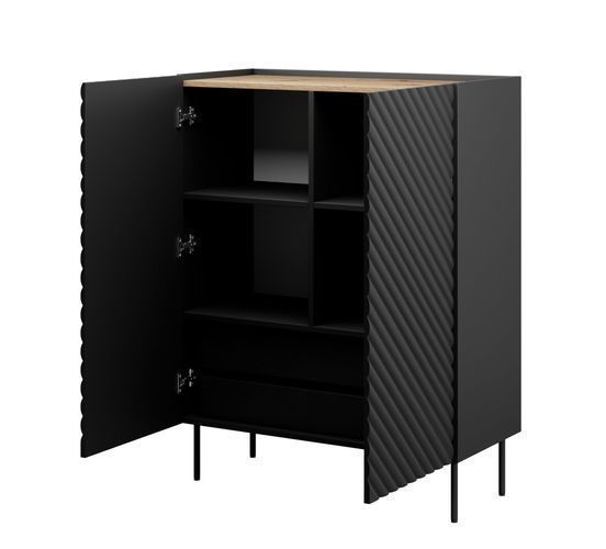 Kommode ONDA Kommode 98x127x45 cm 2 türiger Wohnzimmerschrank MDF Schwarz matt