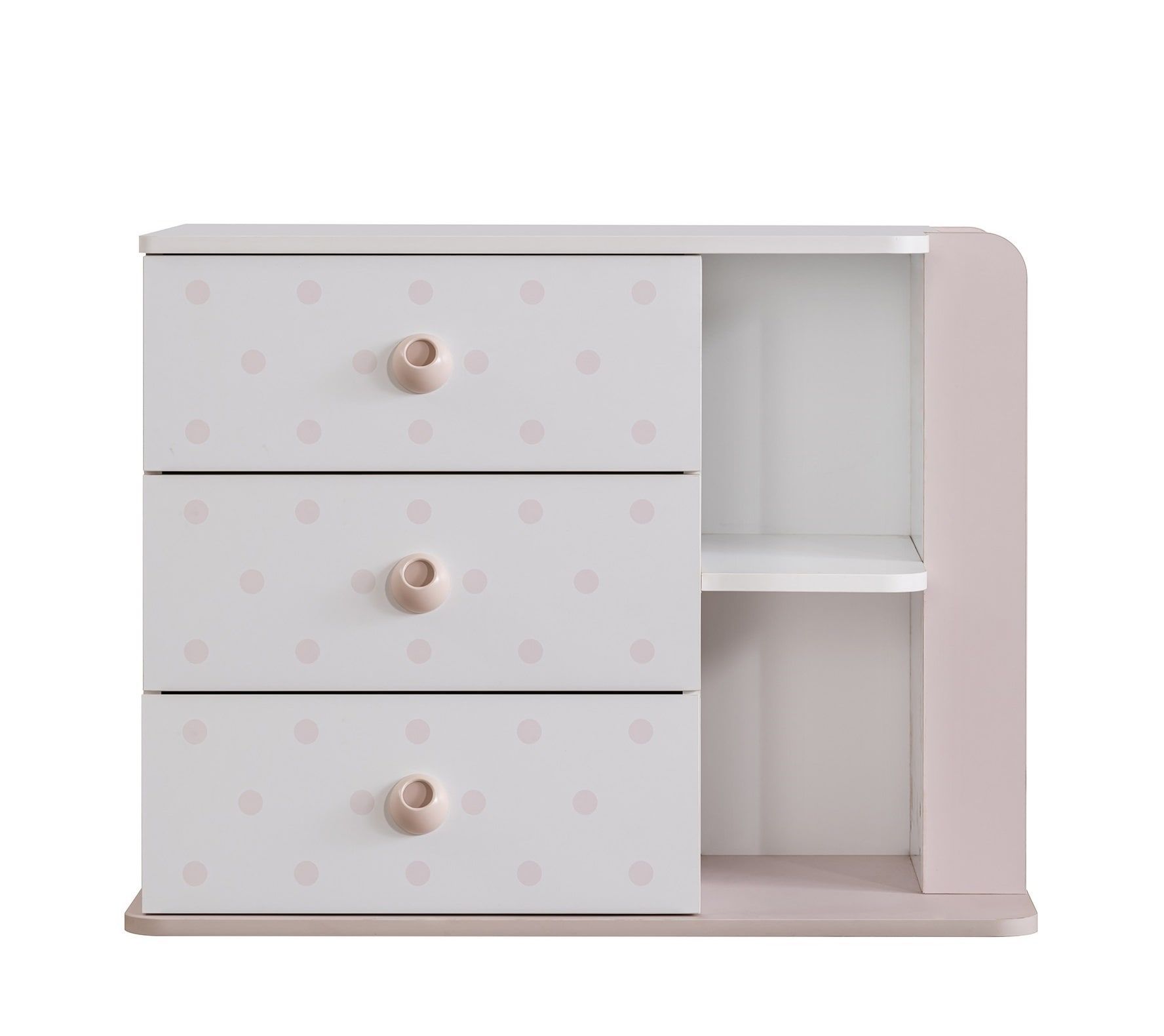 Kommode Rainbow mit 3 Schubladen in Weiß/Rosa