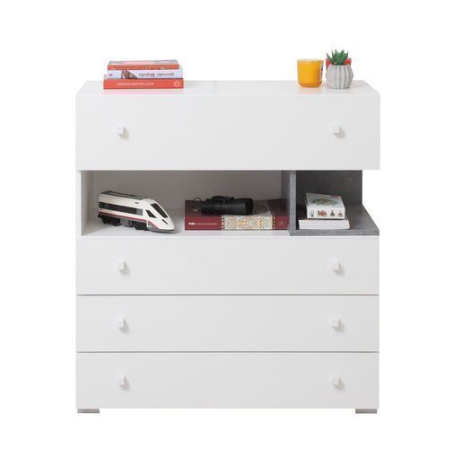 Kommode Schubladenkommode Sigma SI - 11 mit 4 Schubladen (Weiß Lux/ Beton)