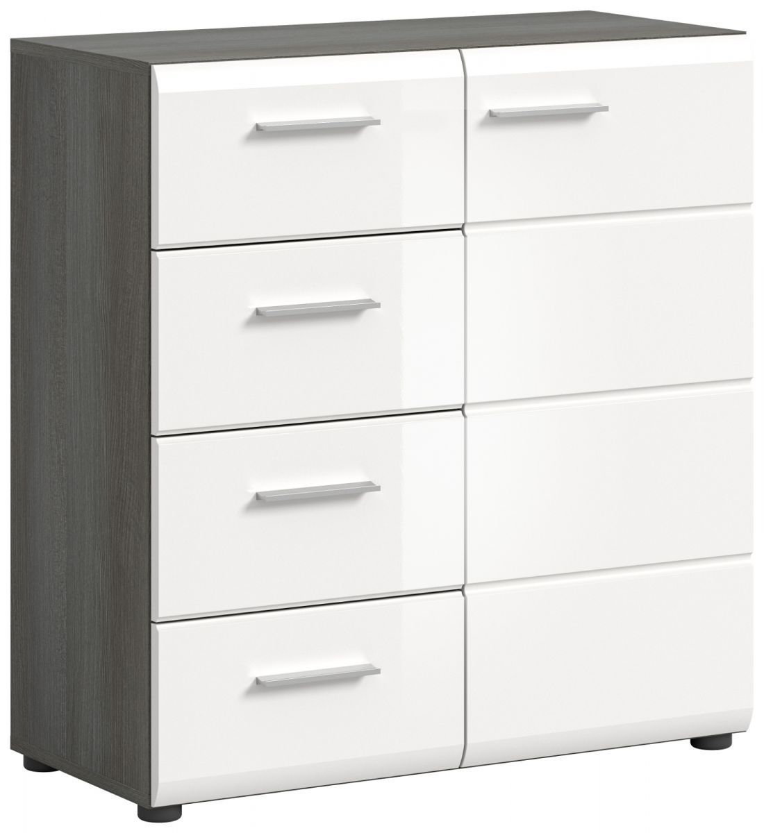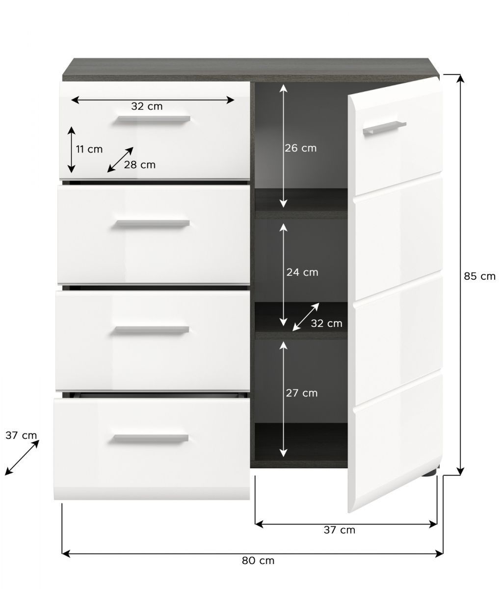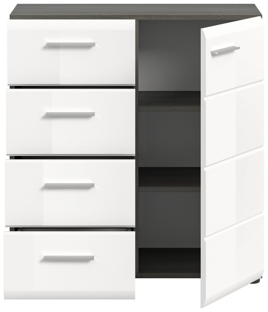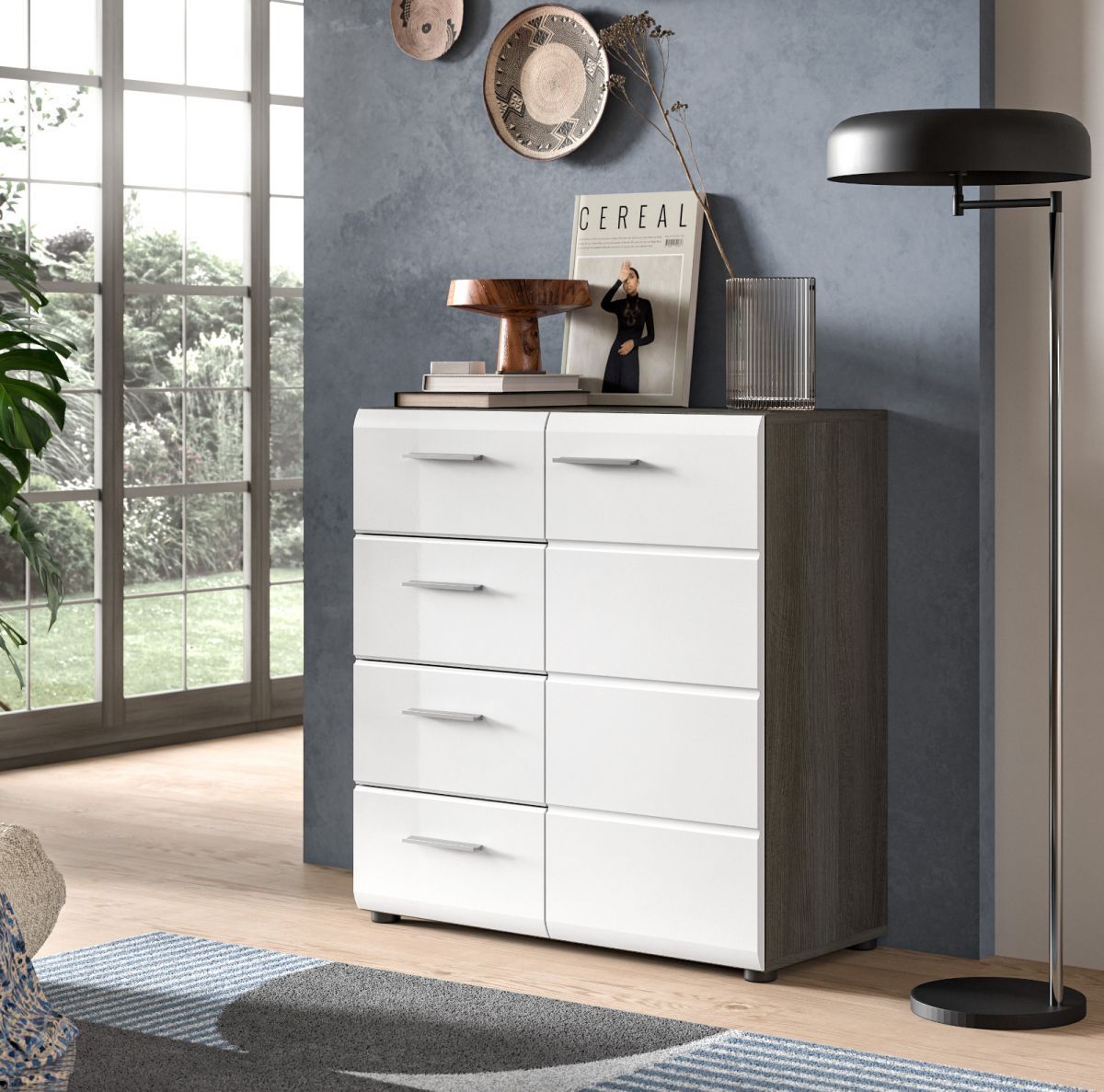 Kommode Schubladenkommode weiß Hochglanz grau Sideboard modern 80 x 85 cm Rumba