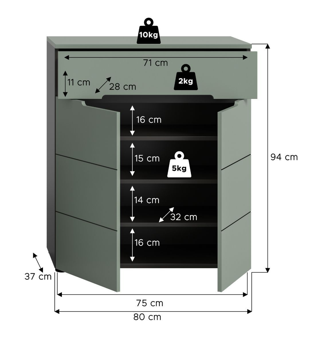 Kommode Schuhschrank Flur Schuhkommode in Salbei und Grau, Soft-Close Cooper