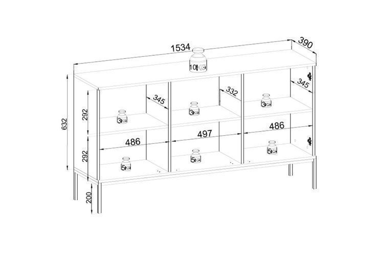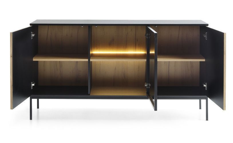 Kommode SENTO K154 Sideboard 154x83x83 cm 3 Türen Wohnzimmerschrank Led Licht