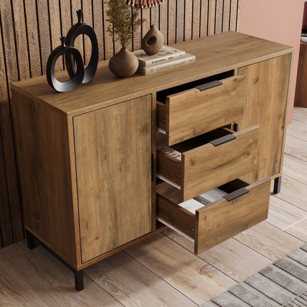 Kommode Sideboard Eicheoptik 2 Türen 4 Schubladen Softclose