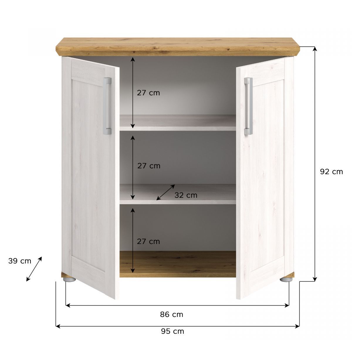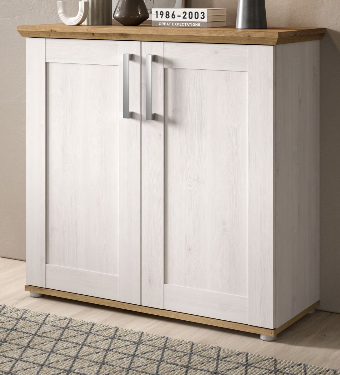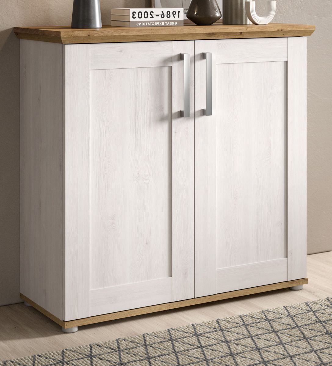 Kommode Sideboard in weiß Lärche und Eiche Landhaus Anrichte Mirano Schrank 95x92 cm