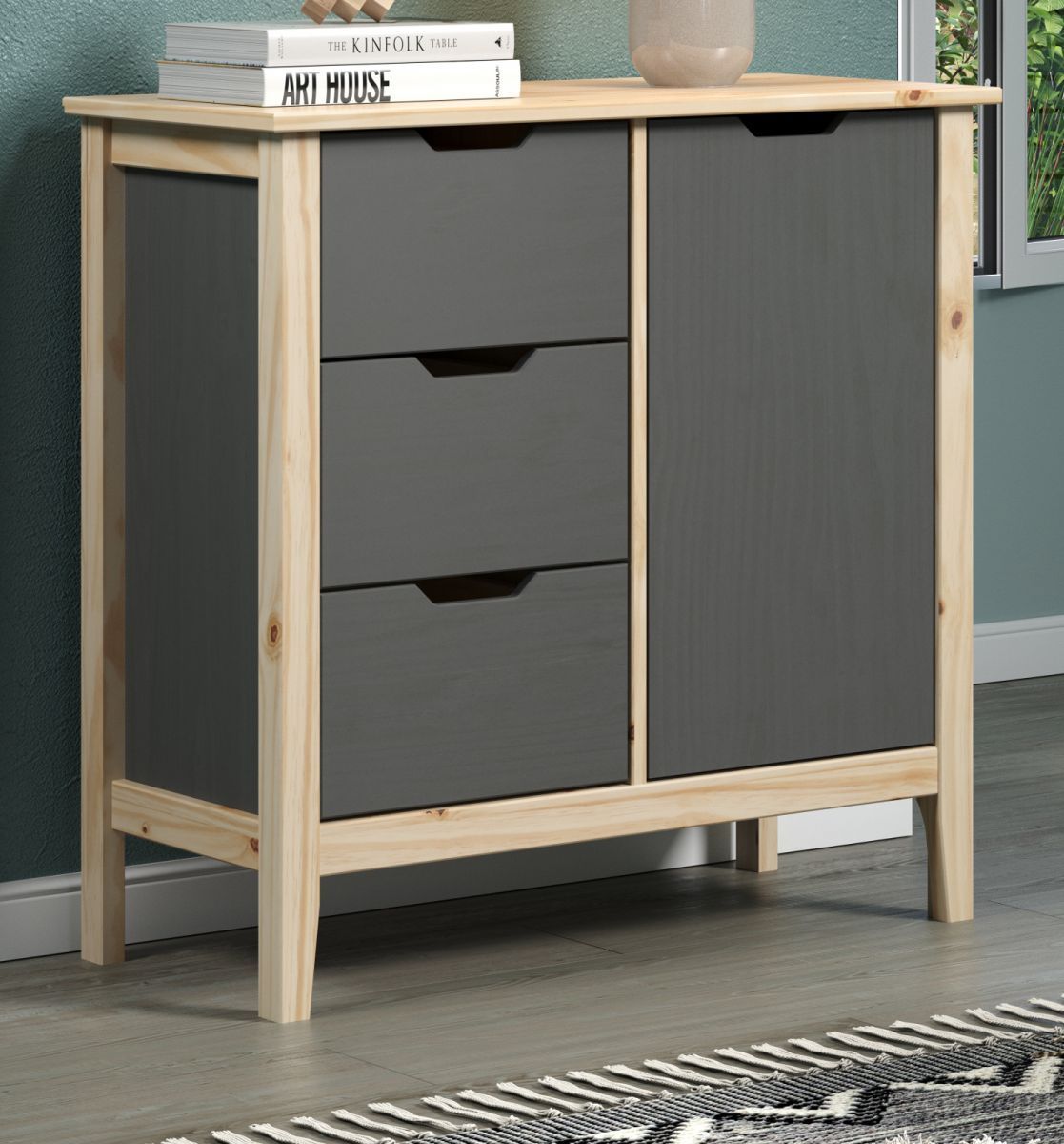 Kommode Sideboard Kiefer massiv grau Wohn- und Esszimmer Massivholz Latera 78 cm