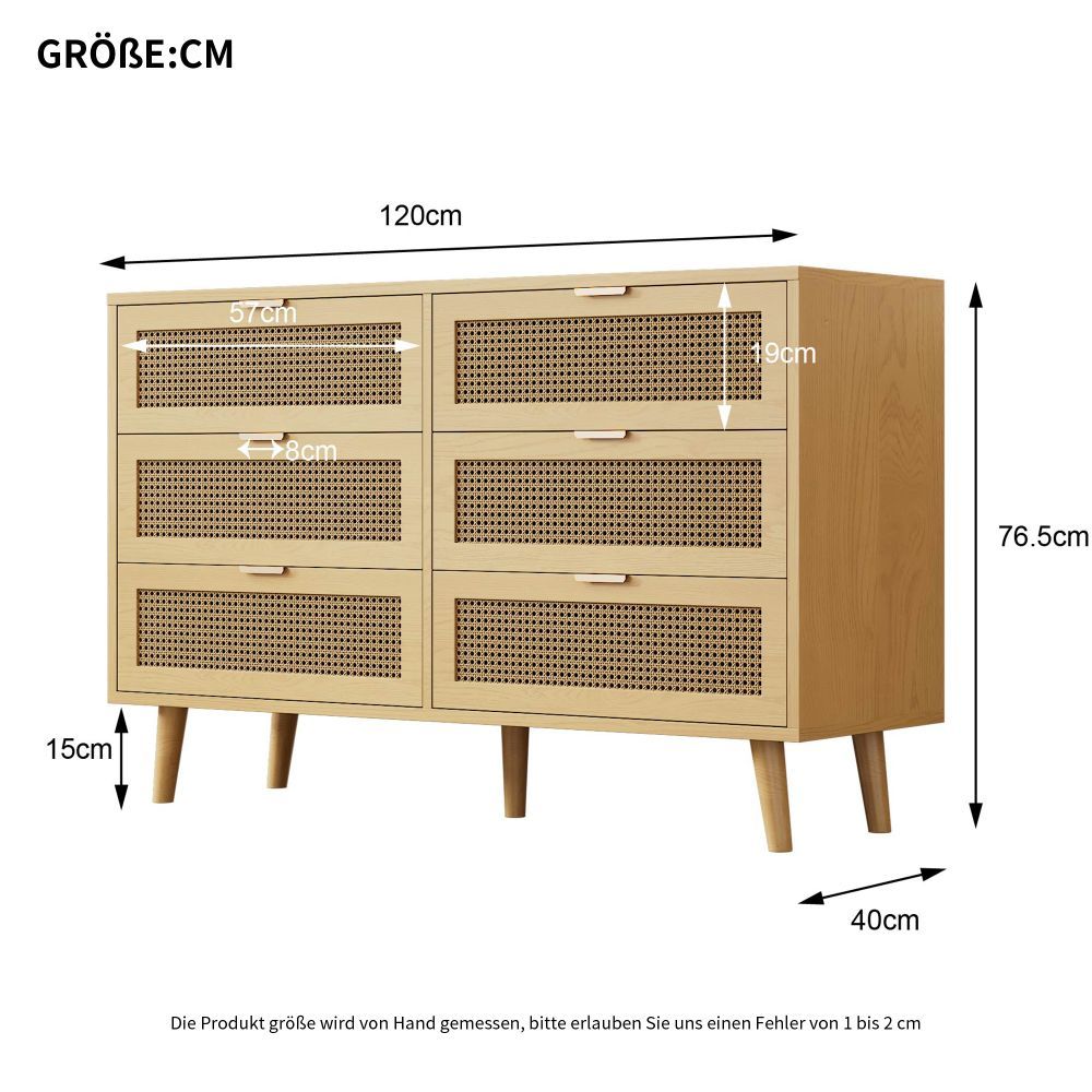 Kommode Sideboard mit 6 Schubladen Holz Metallgriffe 120x76,5x40 cm