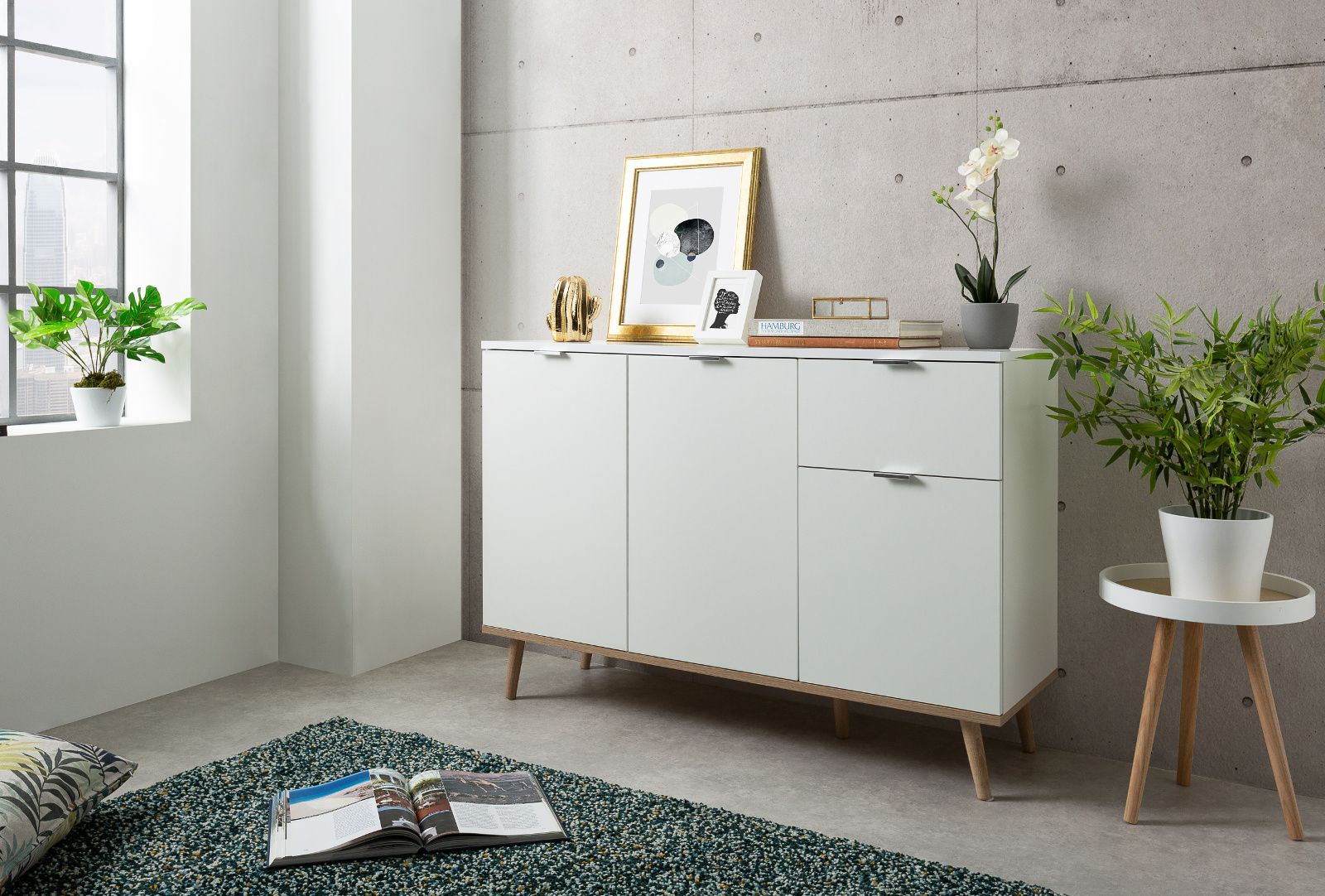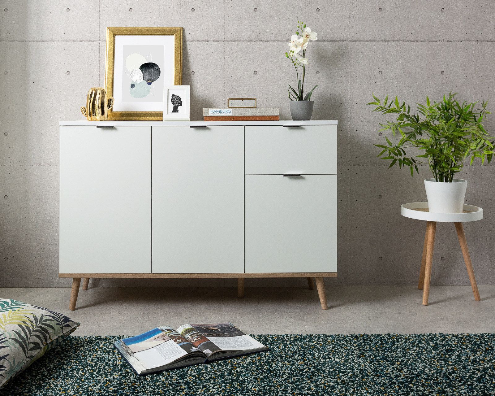 Kommode Sideboard weiß Eiche massiv Lundby 120 x 85 cm Wohnzimmer Esszimmer