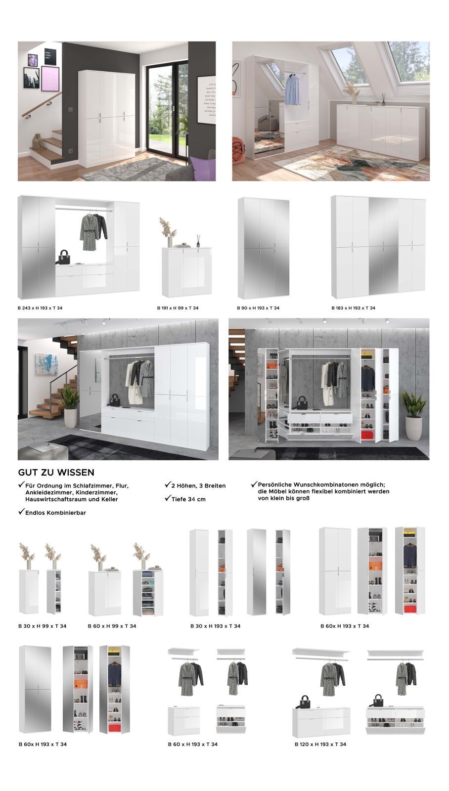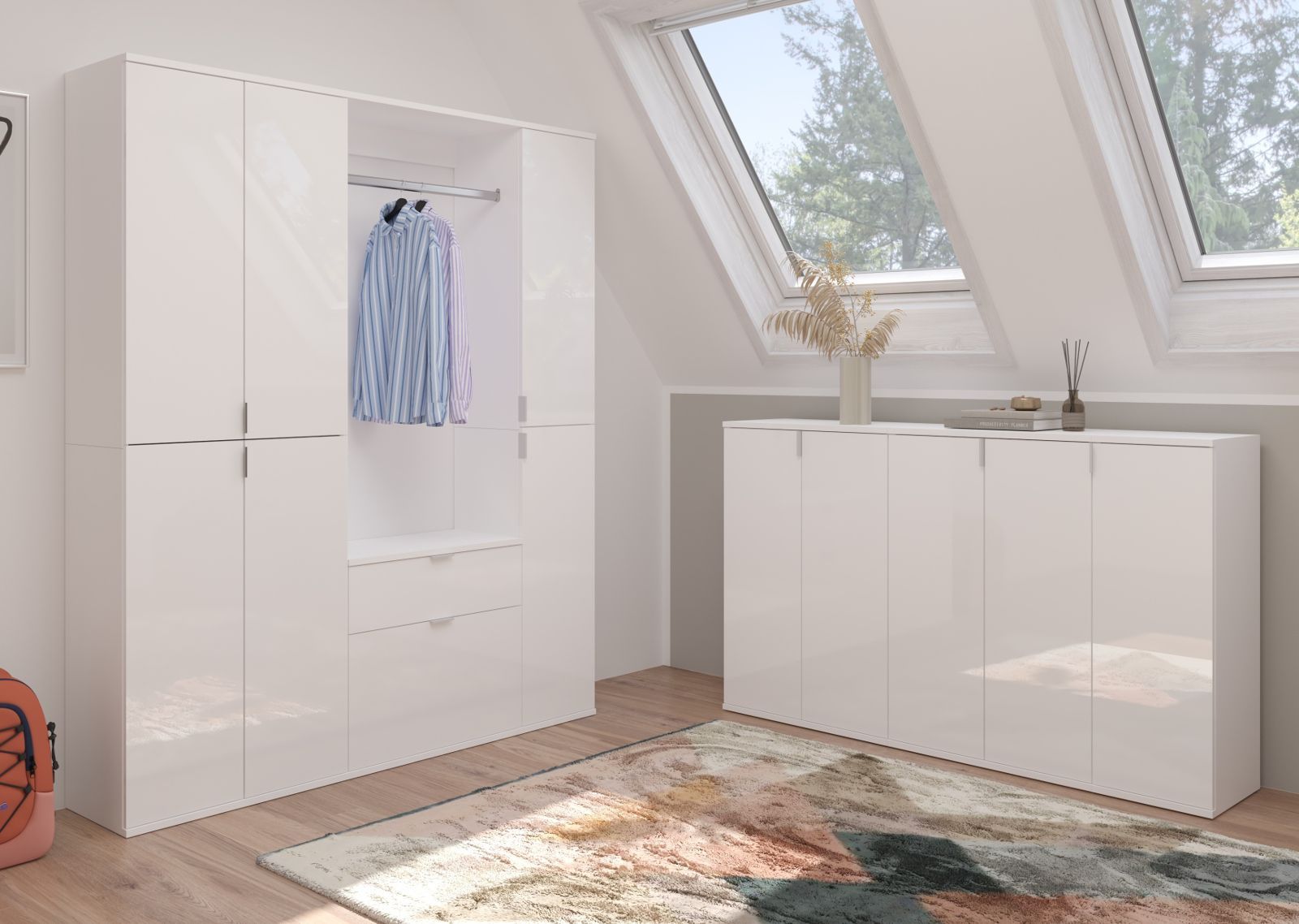 Kommode Sideboard weiß Hochglanz Mehrzweckschrank erweiterbar 6 Fächer SystemX