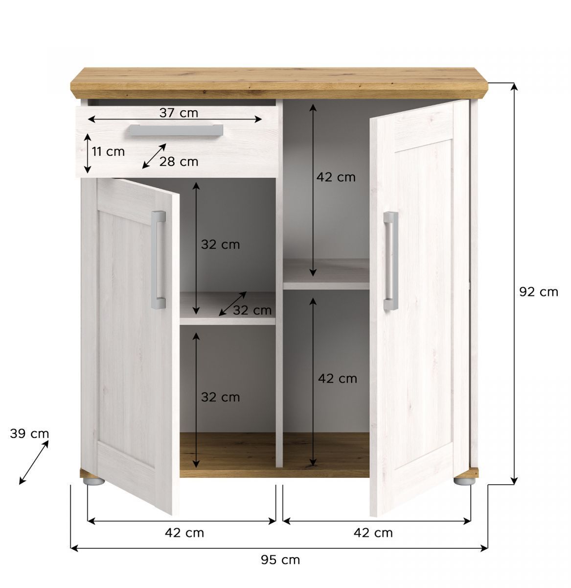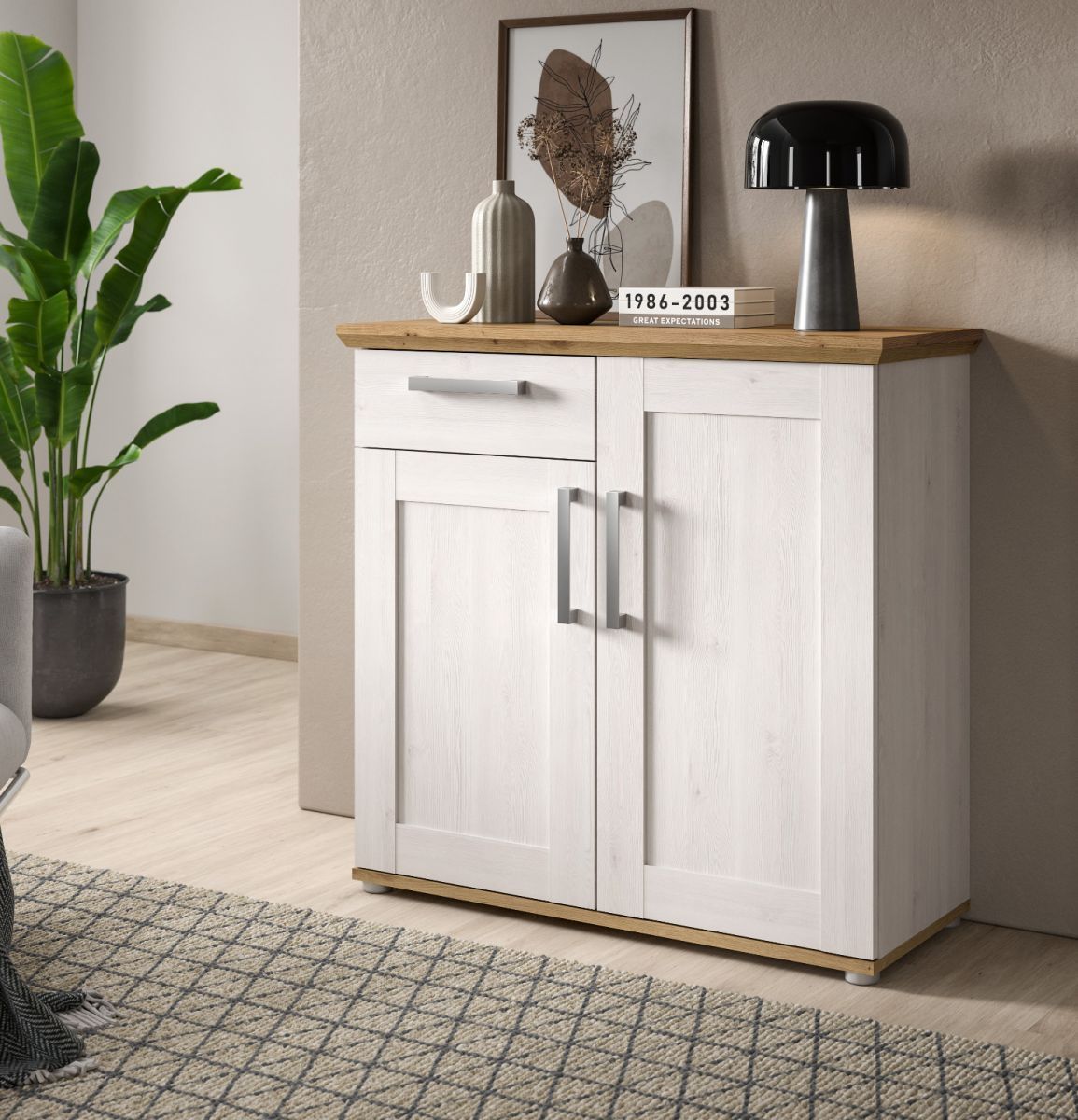 Kommode Sideboard weiß Lärche und Eiche Landhaus Schrank Mirano 95x92 cm