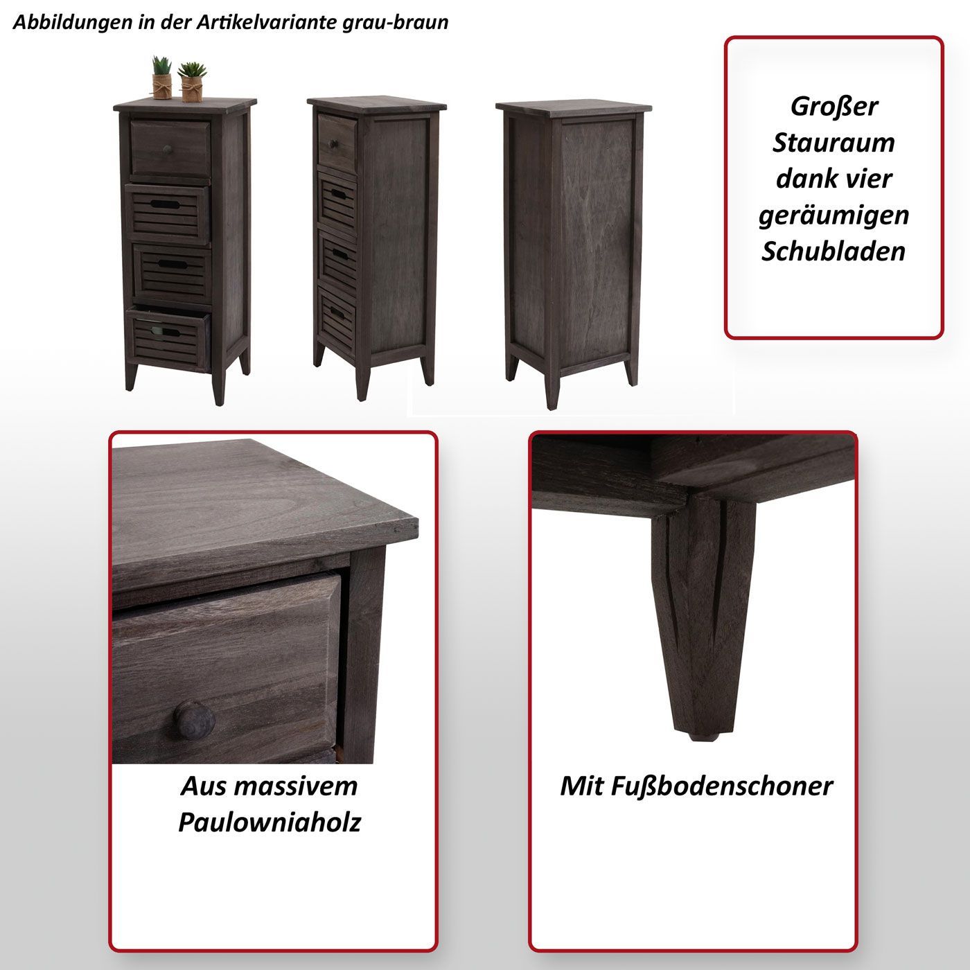 Mendler Kommode T18, Schubladenschrank Schrank, 4 Schubladen, 74x30x25cm Shabby-Look Vintage