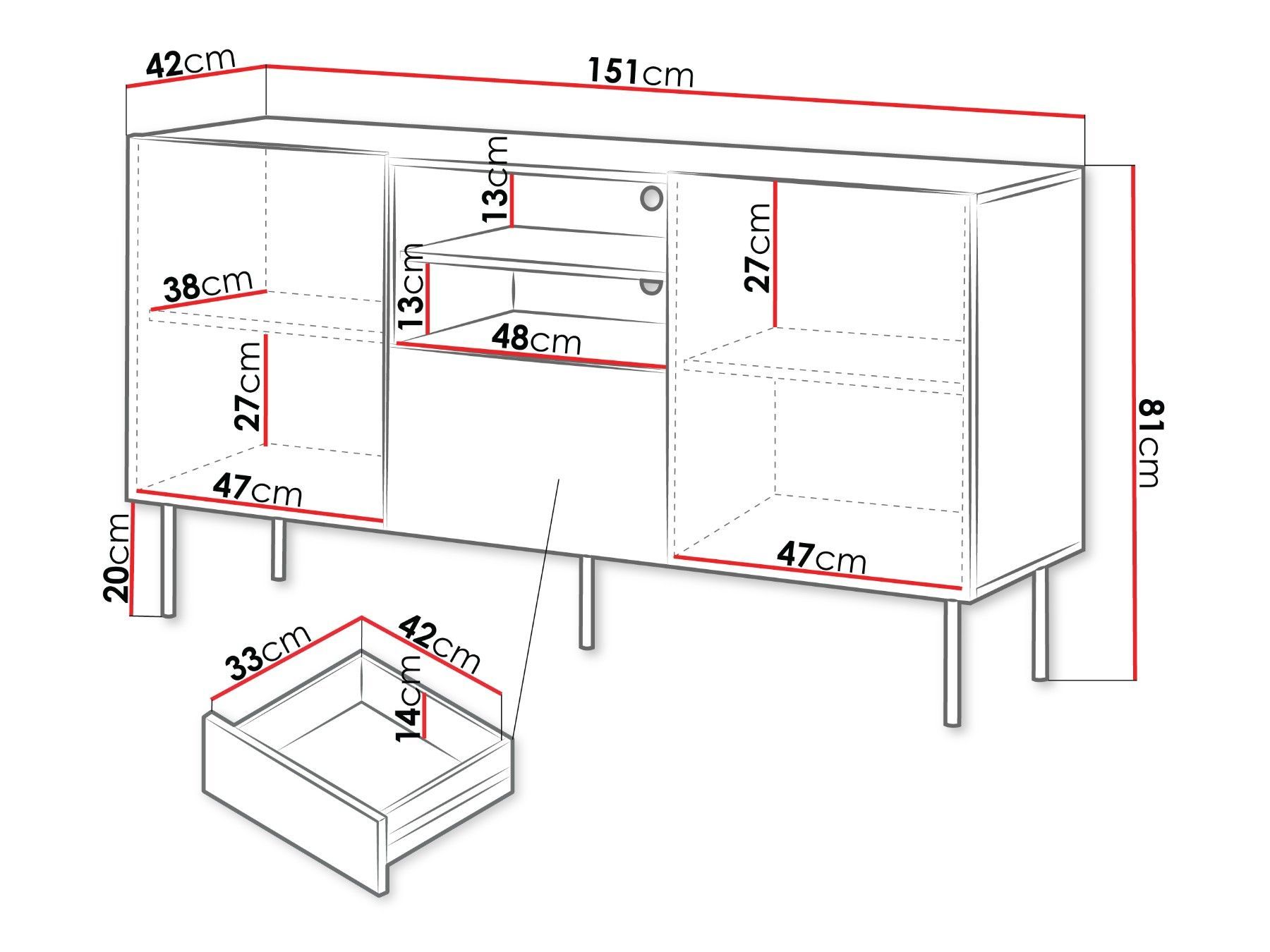 Kommode Tacos 150 2D1S mit Schublade Kombikommode Modern Wohnzimmer Kollektion M24