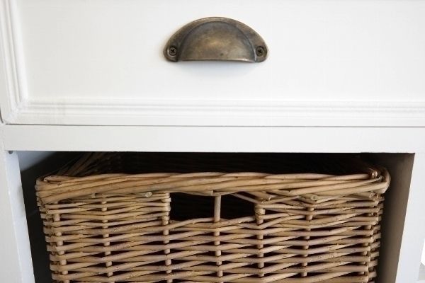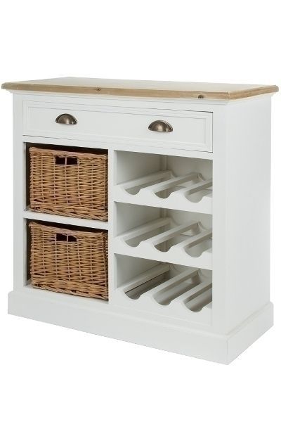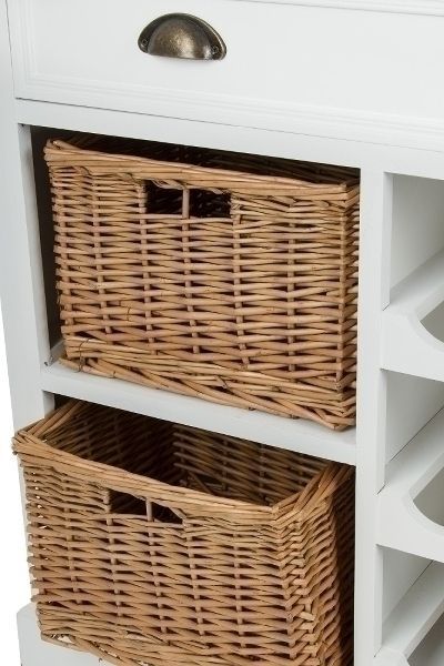 Kommode Toscana 80 x 35 x 80 cm mit Weinflaschenablage Schublade und Rattankörbe