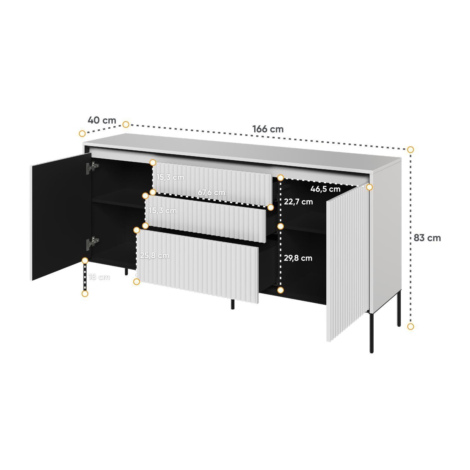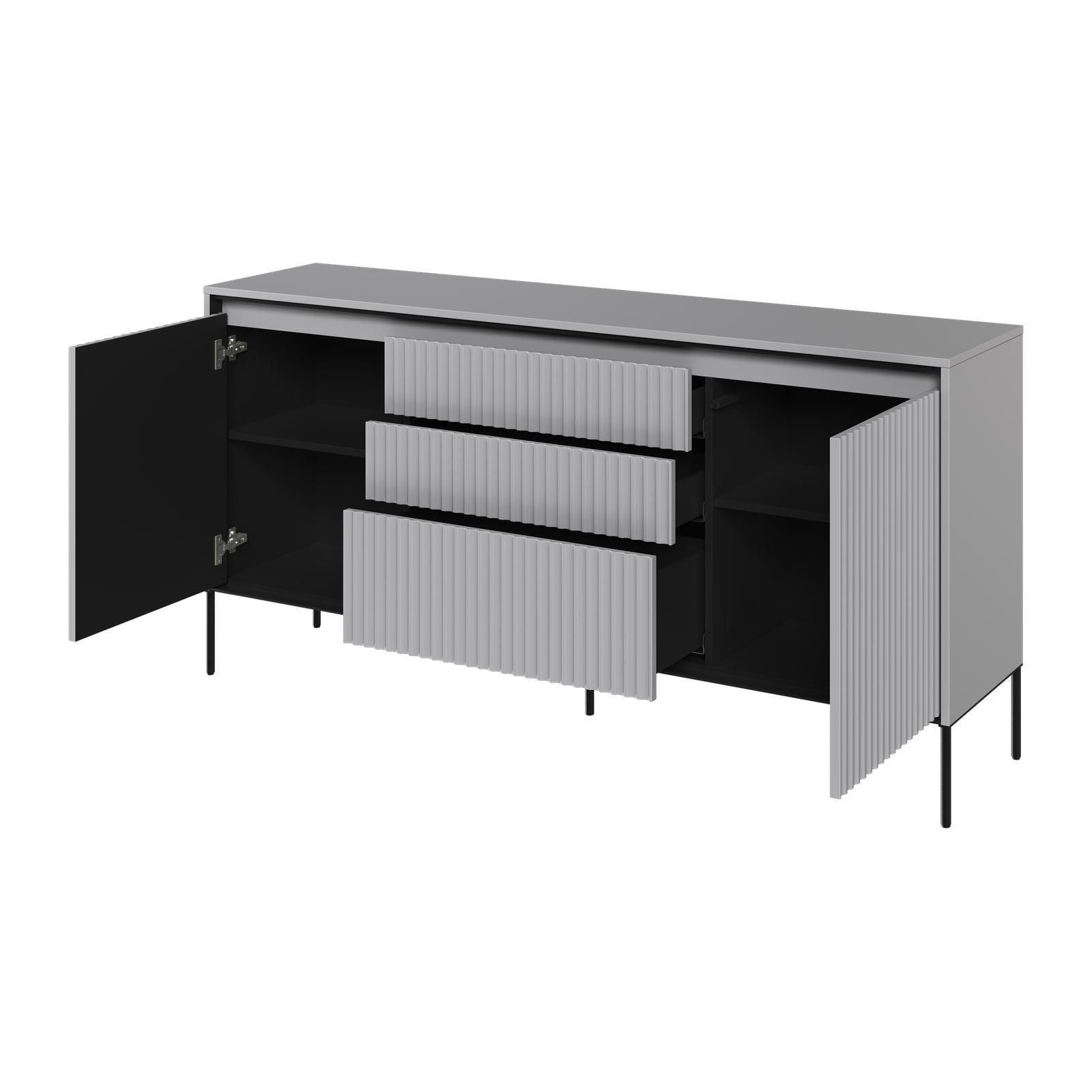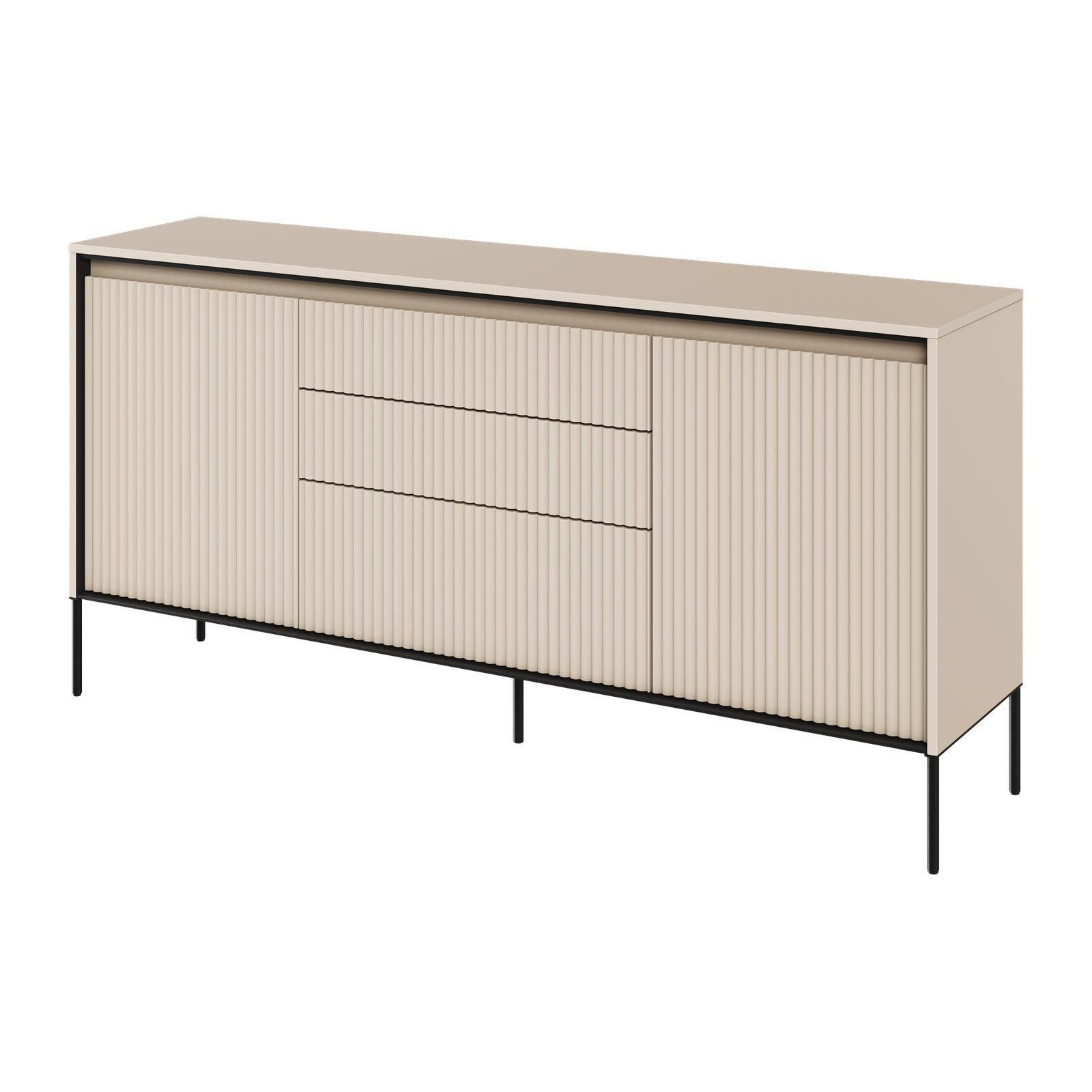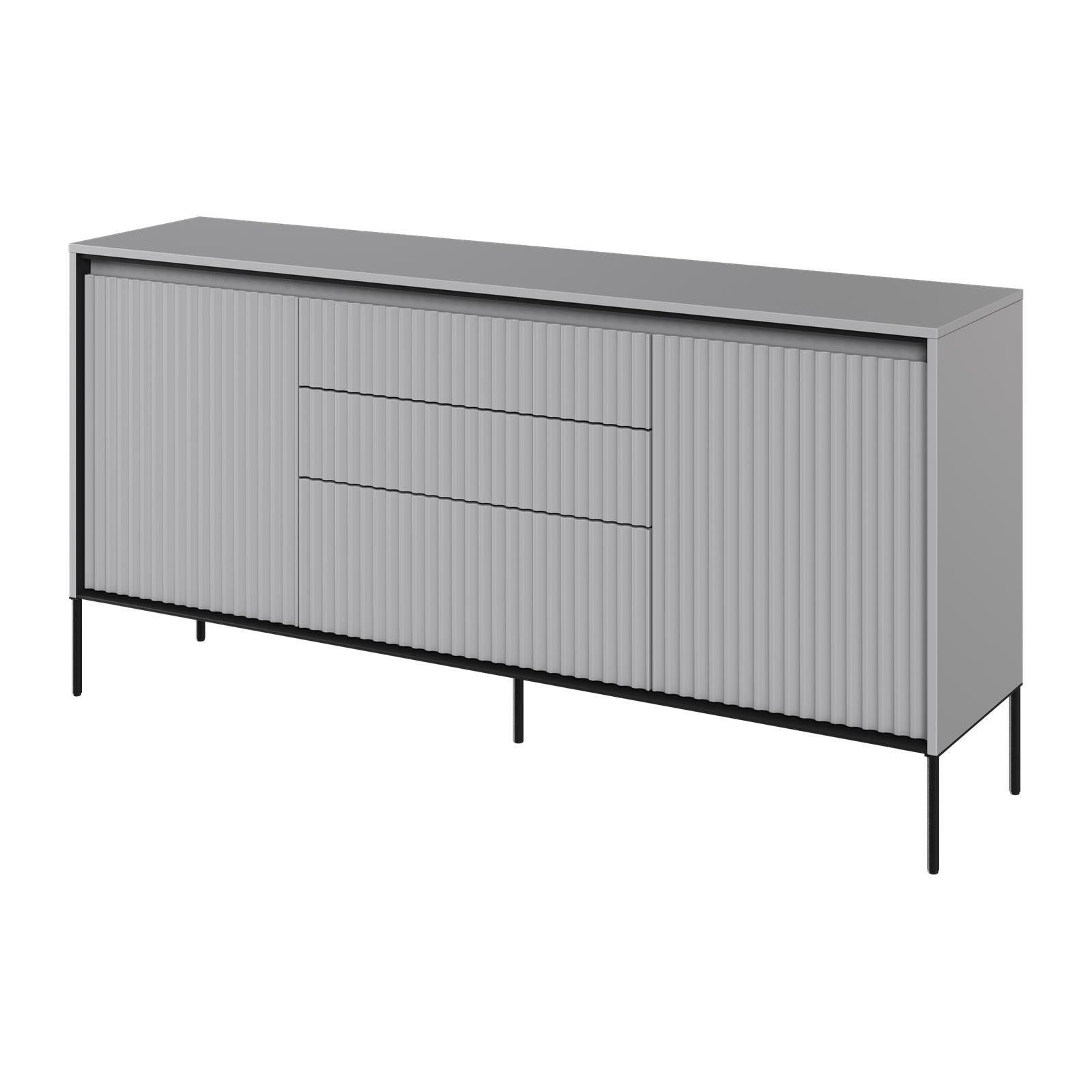 Kommode TREND TR-01 Sideboard Schrank Anrichte Highboard Mehrzweckschrank Die TREND Möbelkollektion vereint zeitgenössischen Stil und Funktionalität. Das charakteristische Merkmal sind die geriffelten Fronten, die den Möbeln ein raffiniertes und einzigartiges Aussehen verleihen. Die schlanken Metall