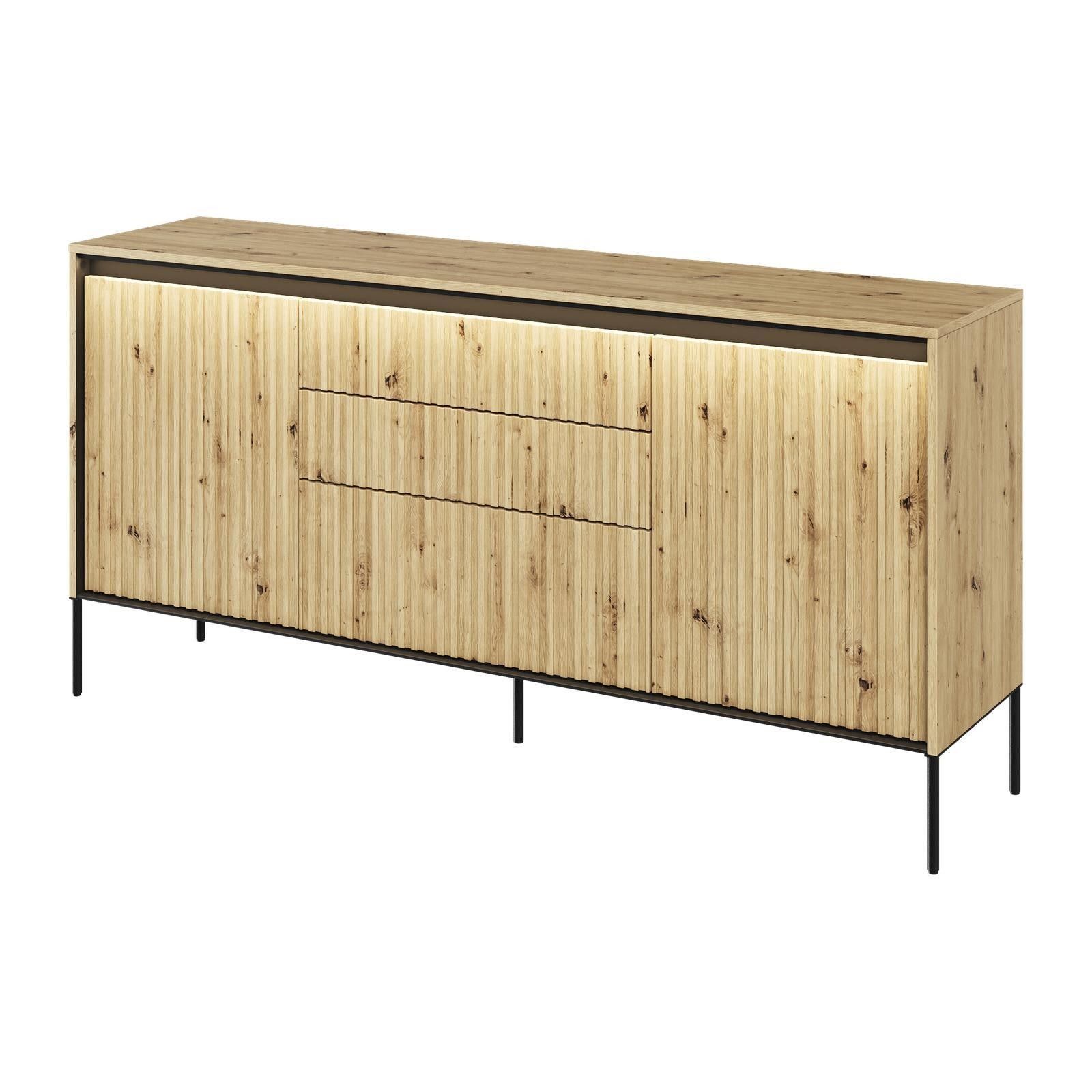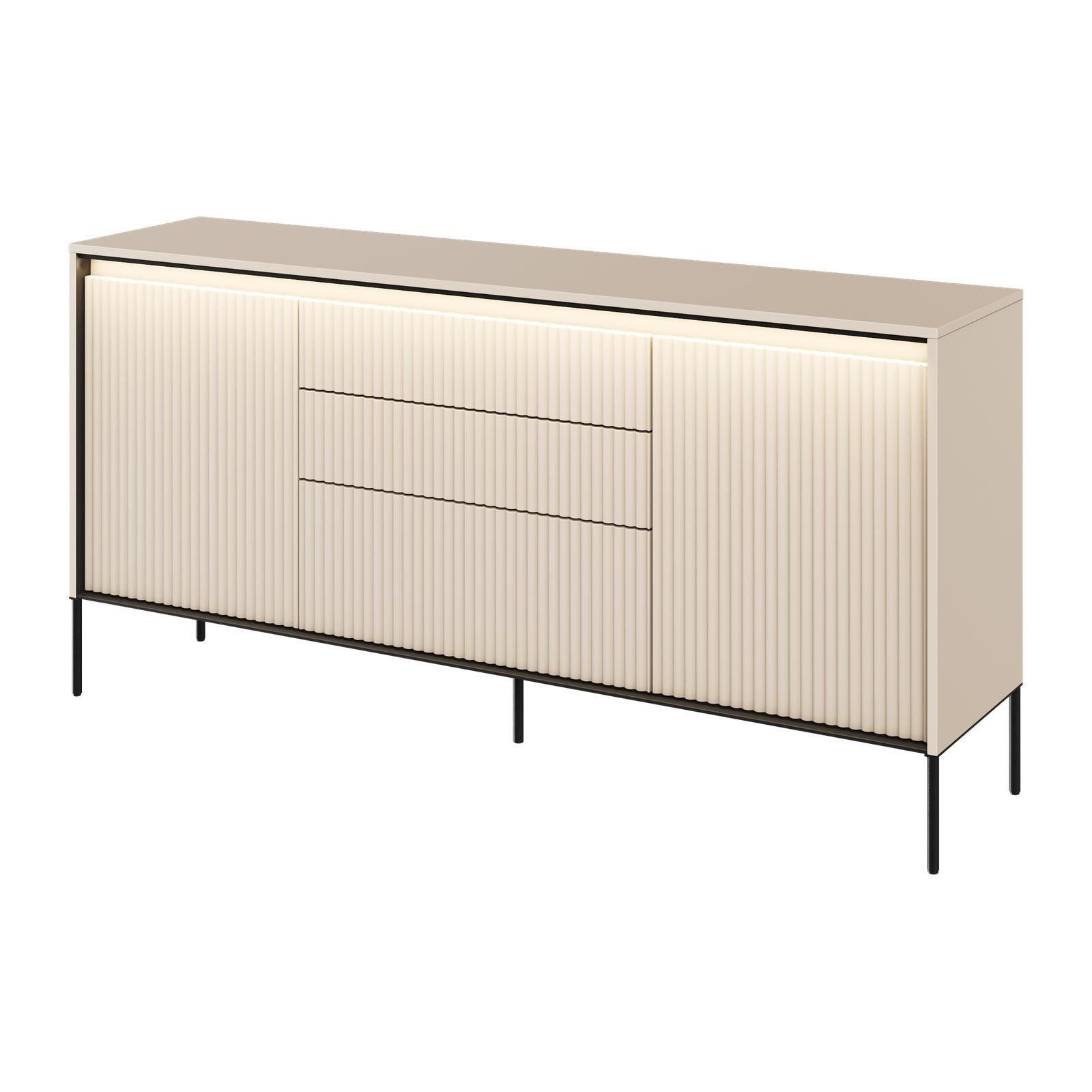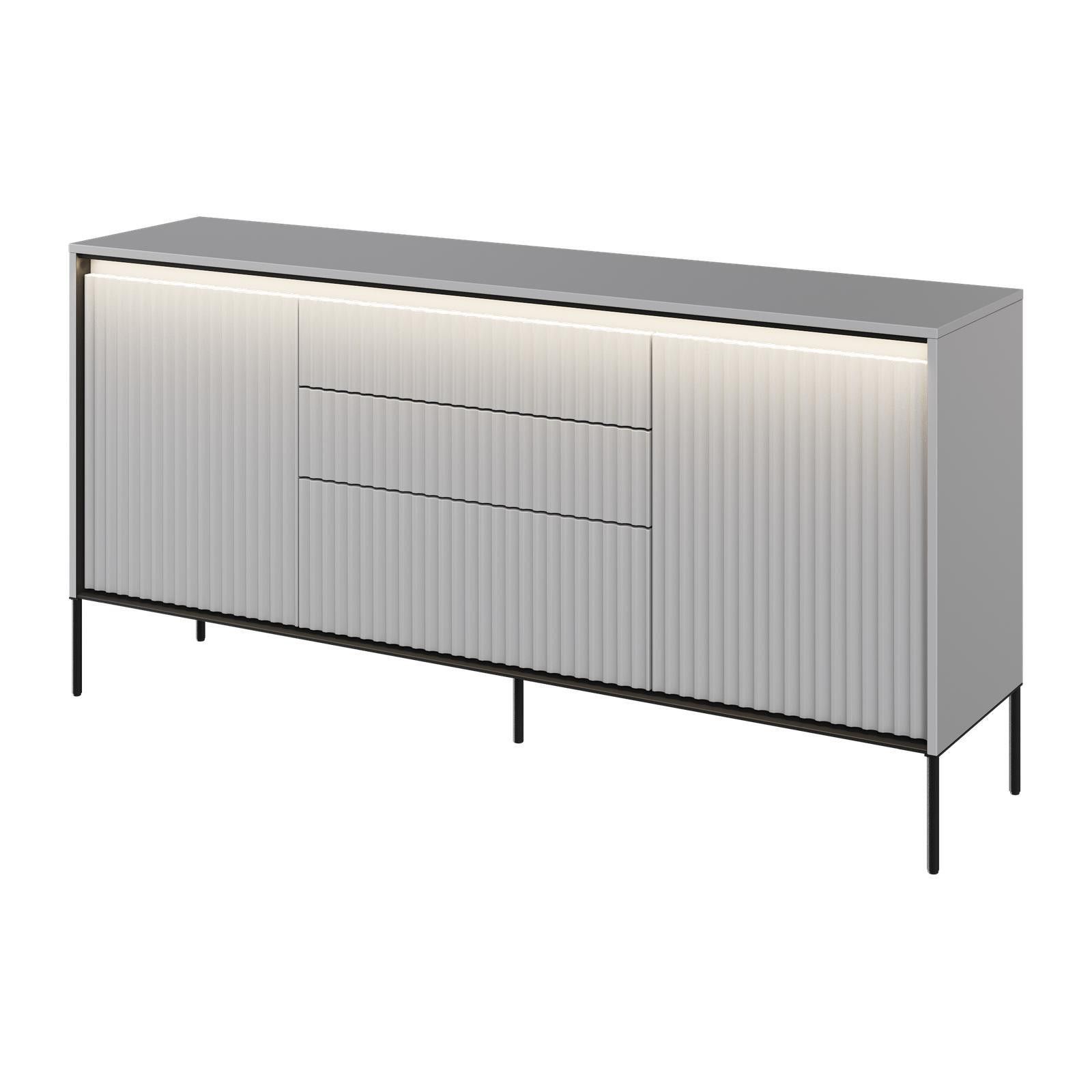 Kommode TREND TR-02 mit 2 Türen Sideboard LED Anrichte Highboard Geriffelt