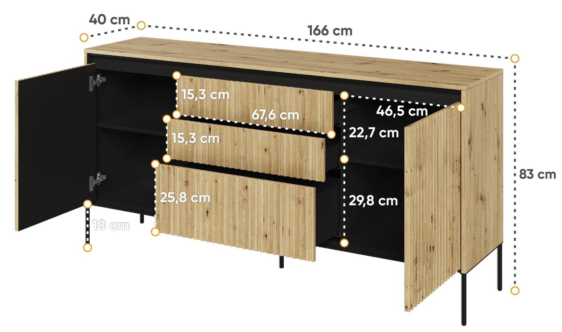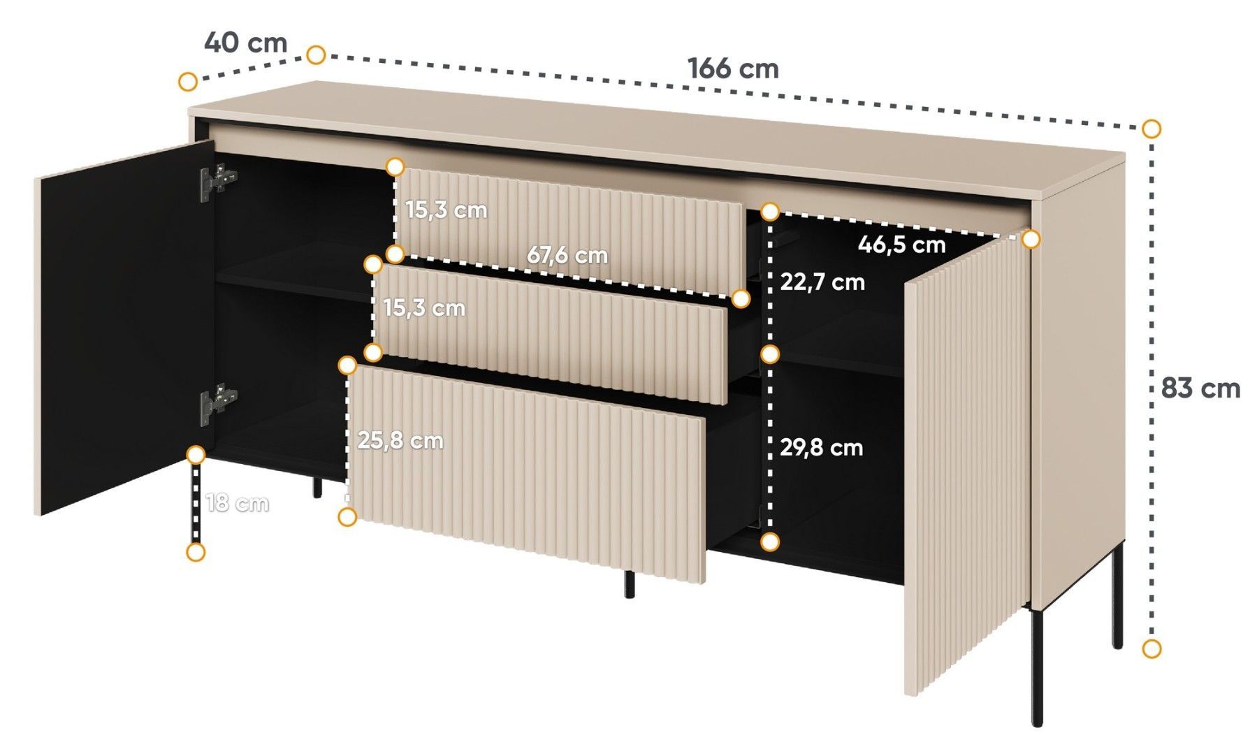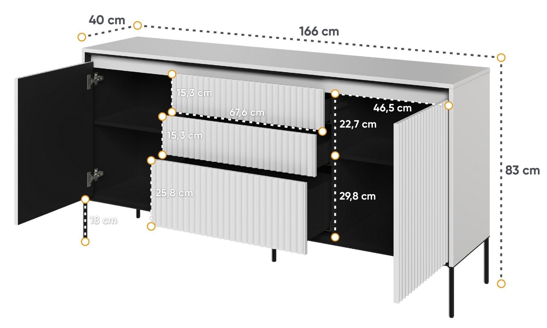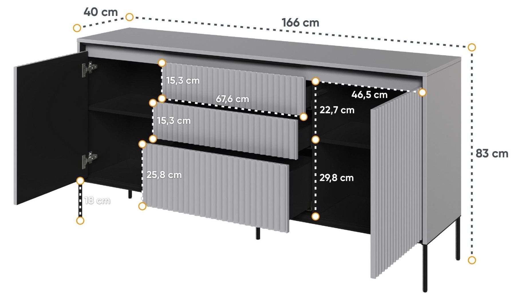 Kommode Trend TR-01 Sideboard 166x83x40 cm geriffelte Front