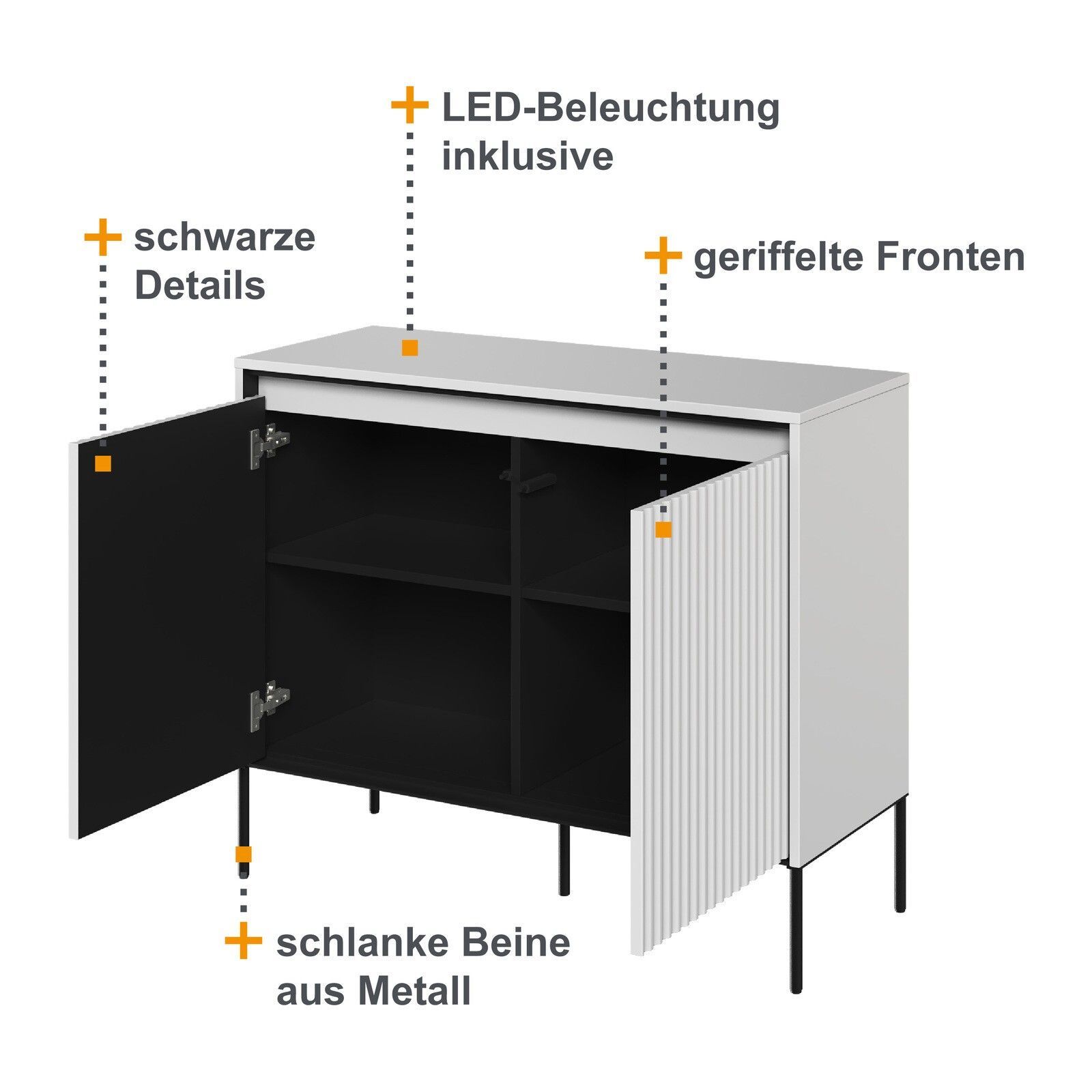Kommode TREND TR-01 mit 2 Türen 3 Schubladen Sideboard LED Anrichte Geriffelt