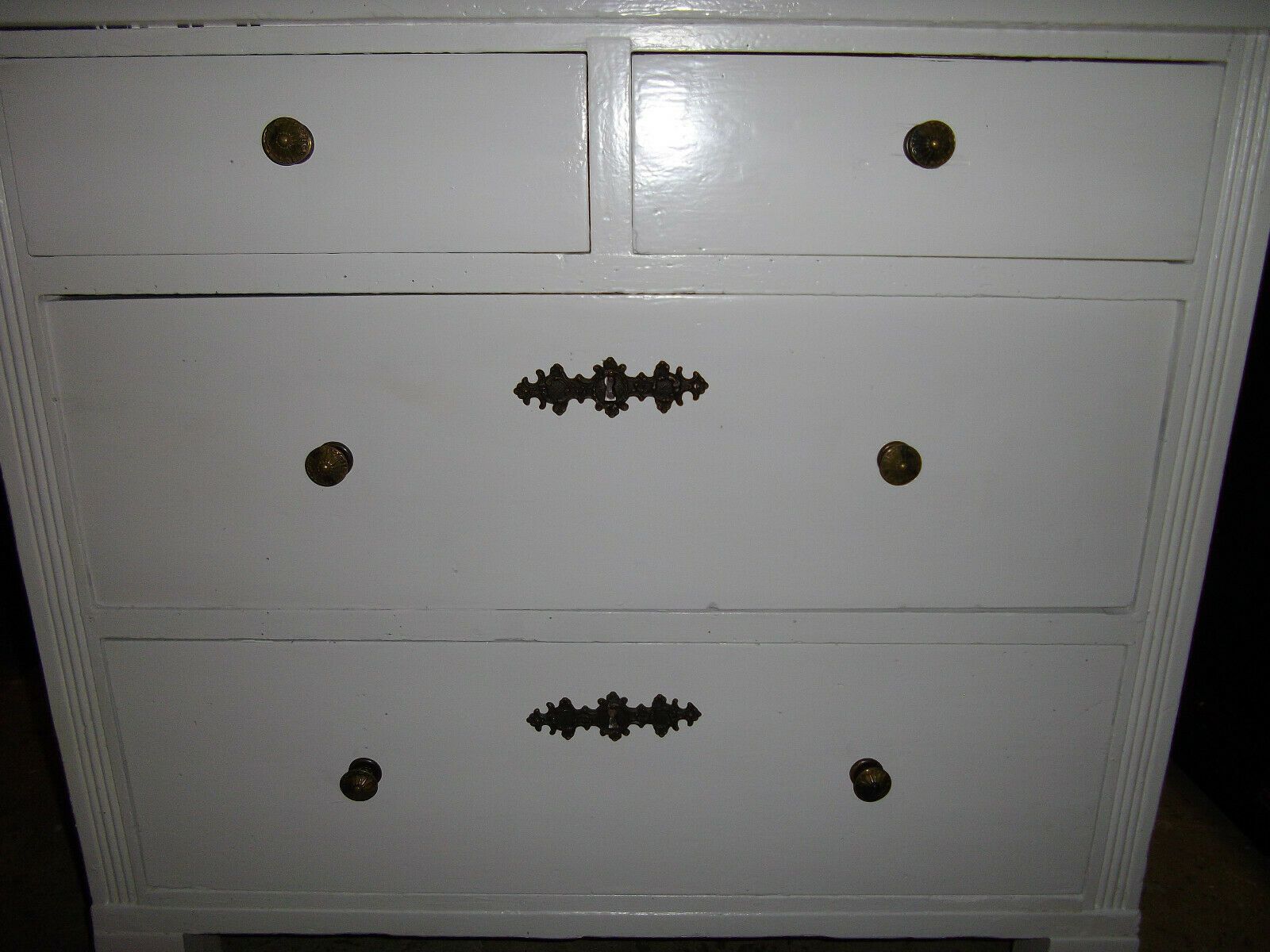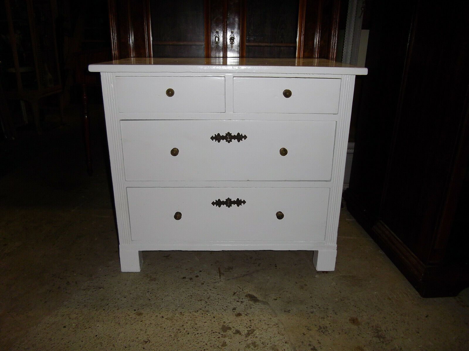 Gründerjahre- Kommode um 1890. Material: Kiefer, seidenmatt weiß lackiert. Vier Schubladen. Bronze-Beschläge Guter Zustand! Maße: H 79, B 89 cm, T 58 cm. Lieferung im Umkreis von 40 km frei Haus! Sonst Transport mit Spedition möglich (je nach Angebot und Entfernung!). Der angegebene Versandpreis bez